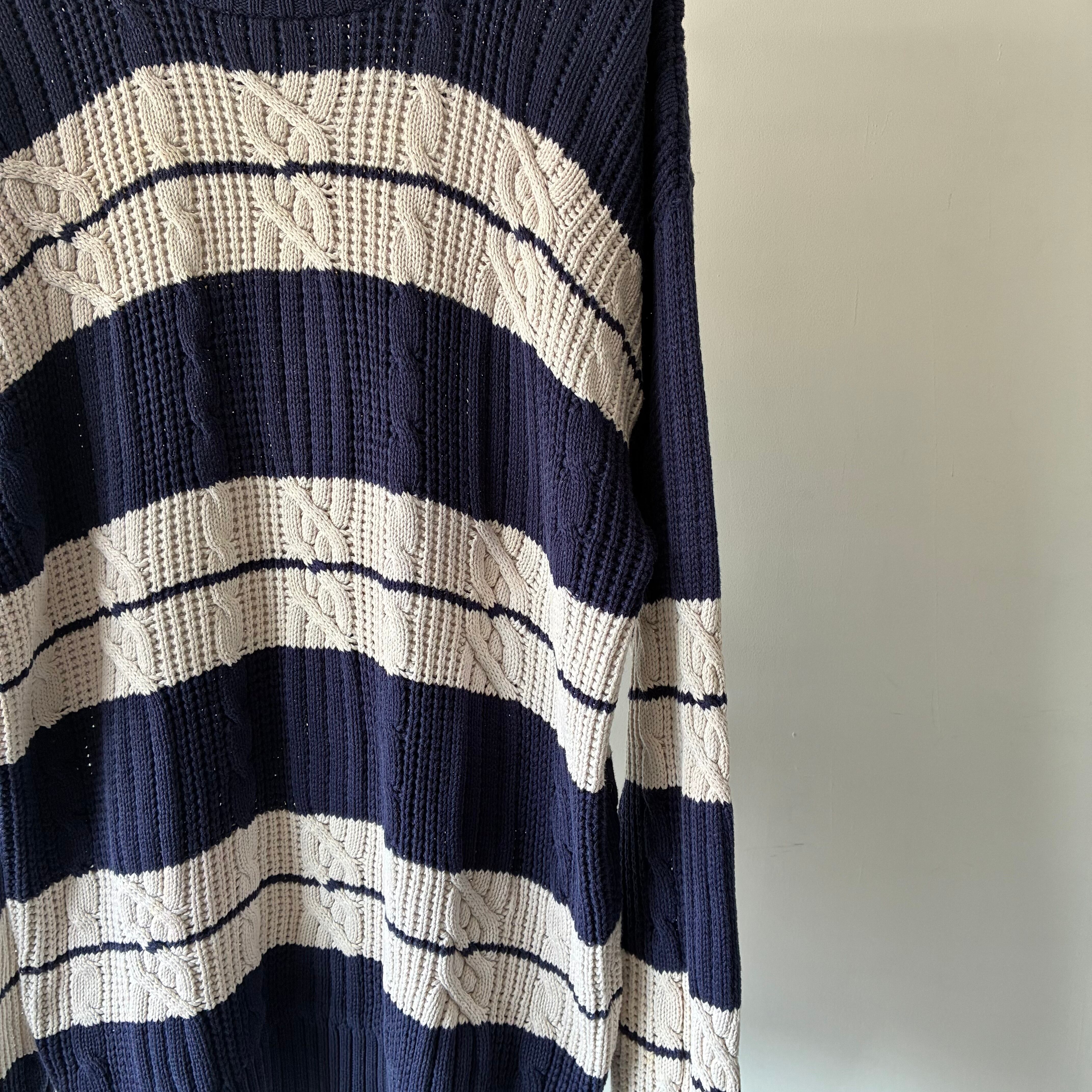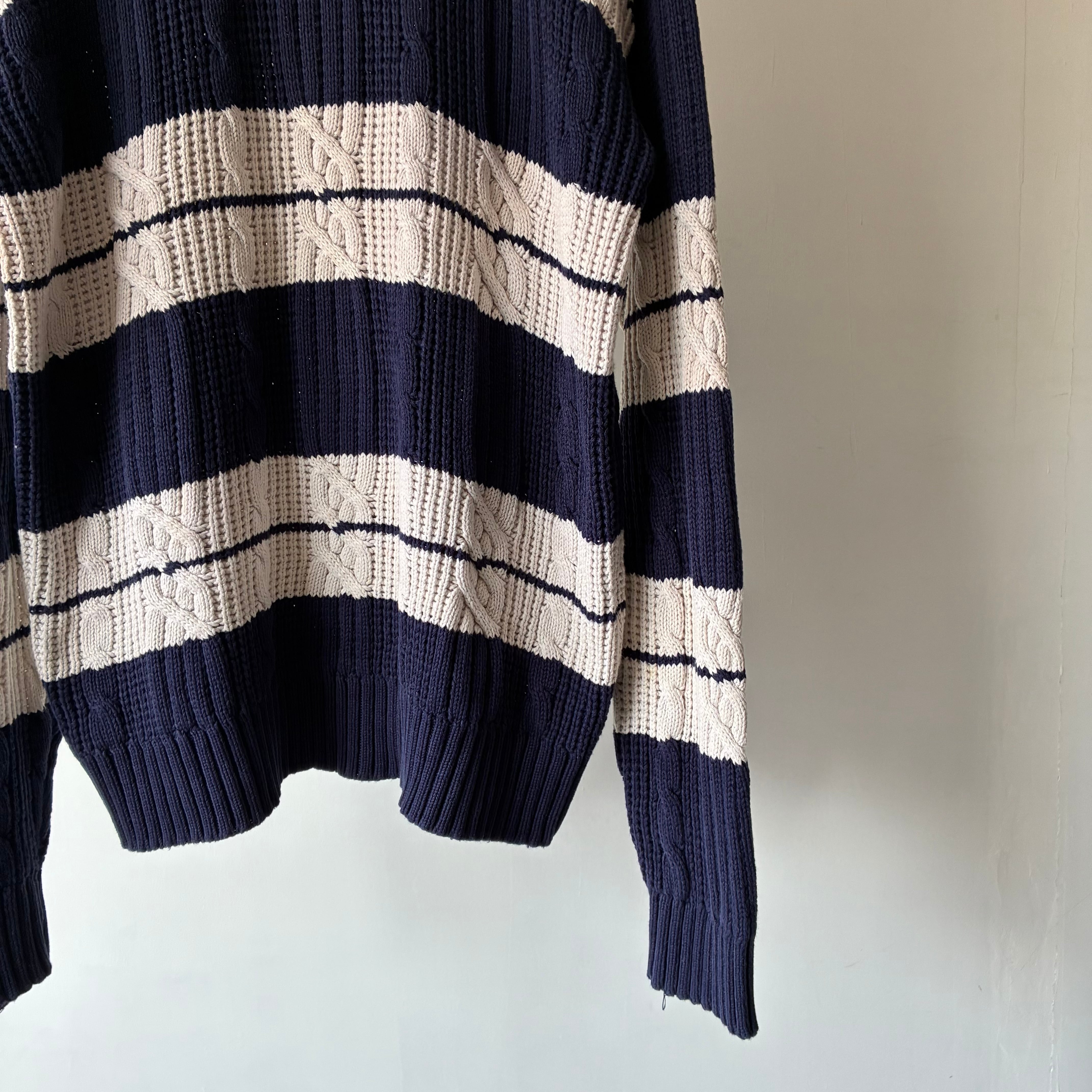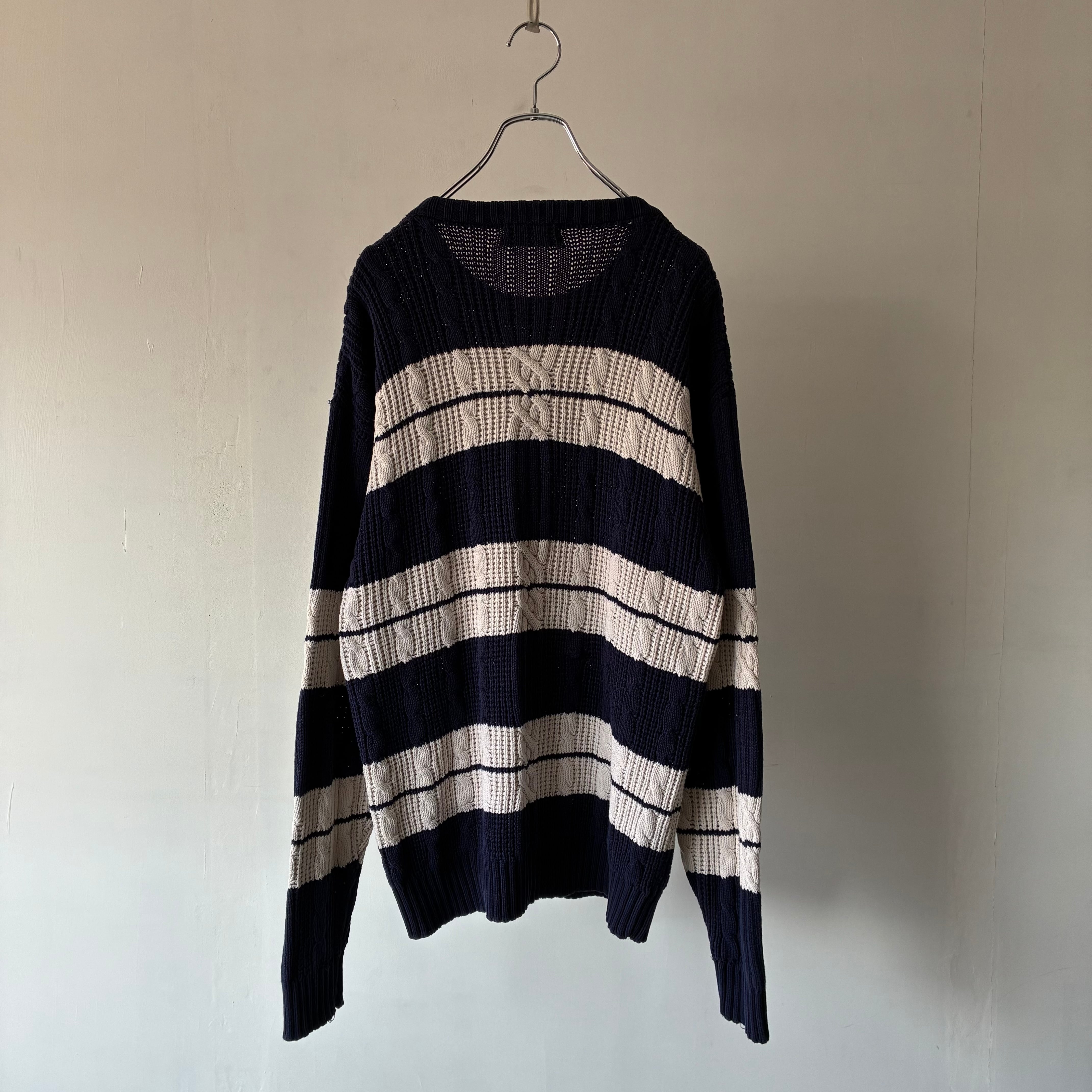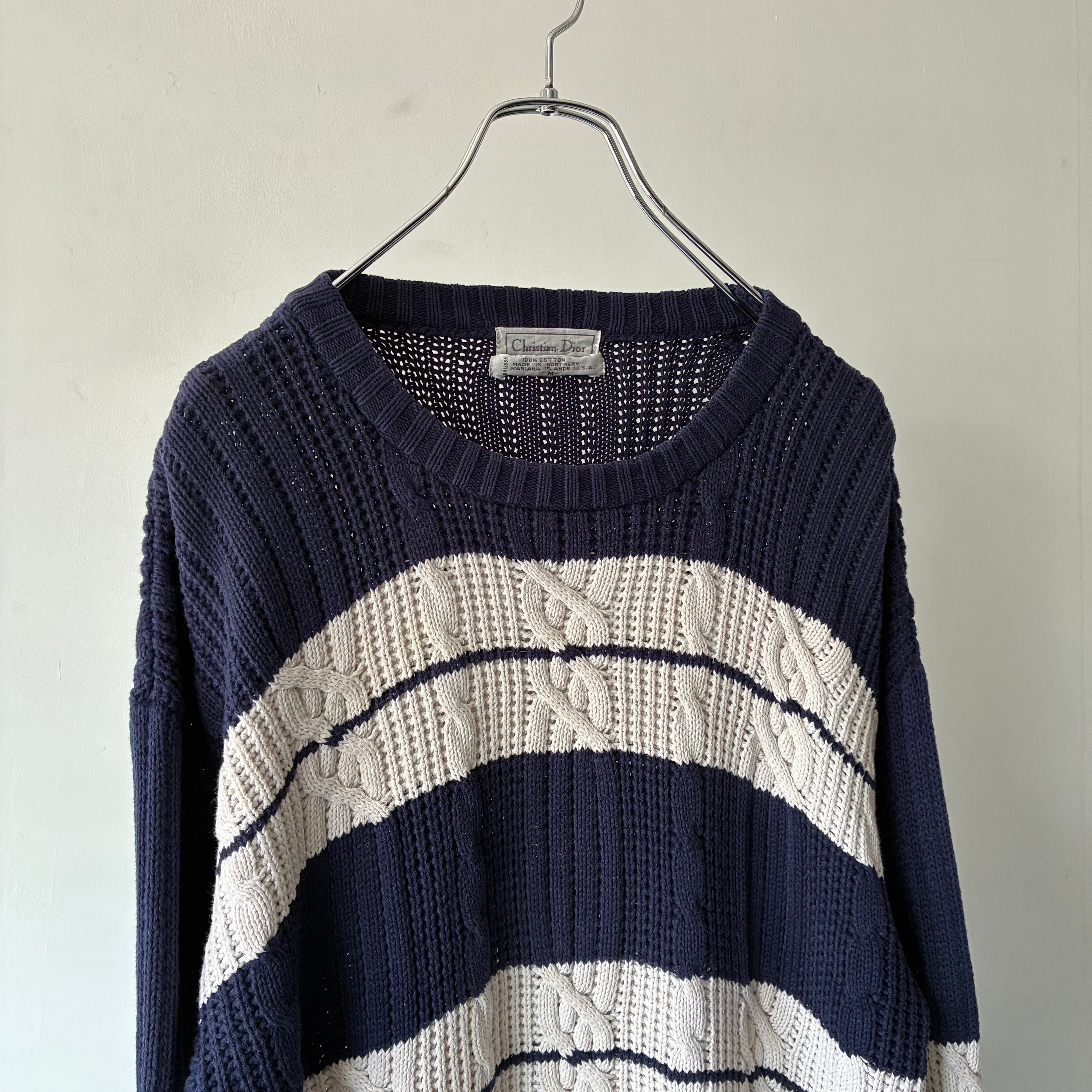 ネイビー×ホワイトの太ボーダーが映える90年代製ディオールのニットセーター