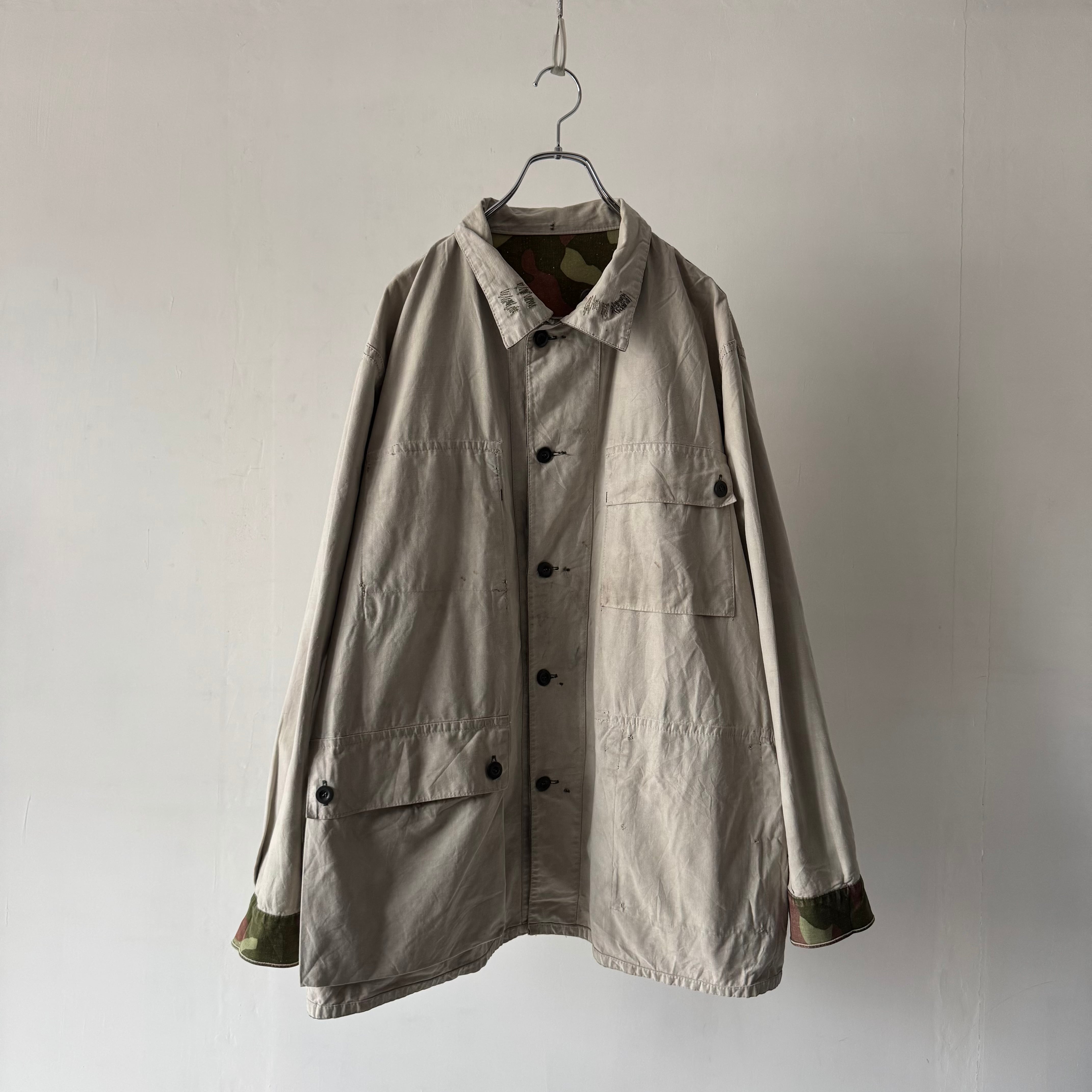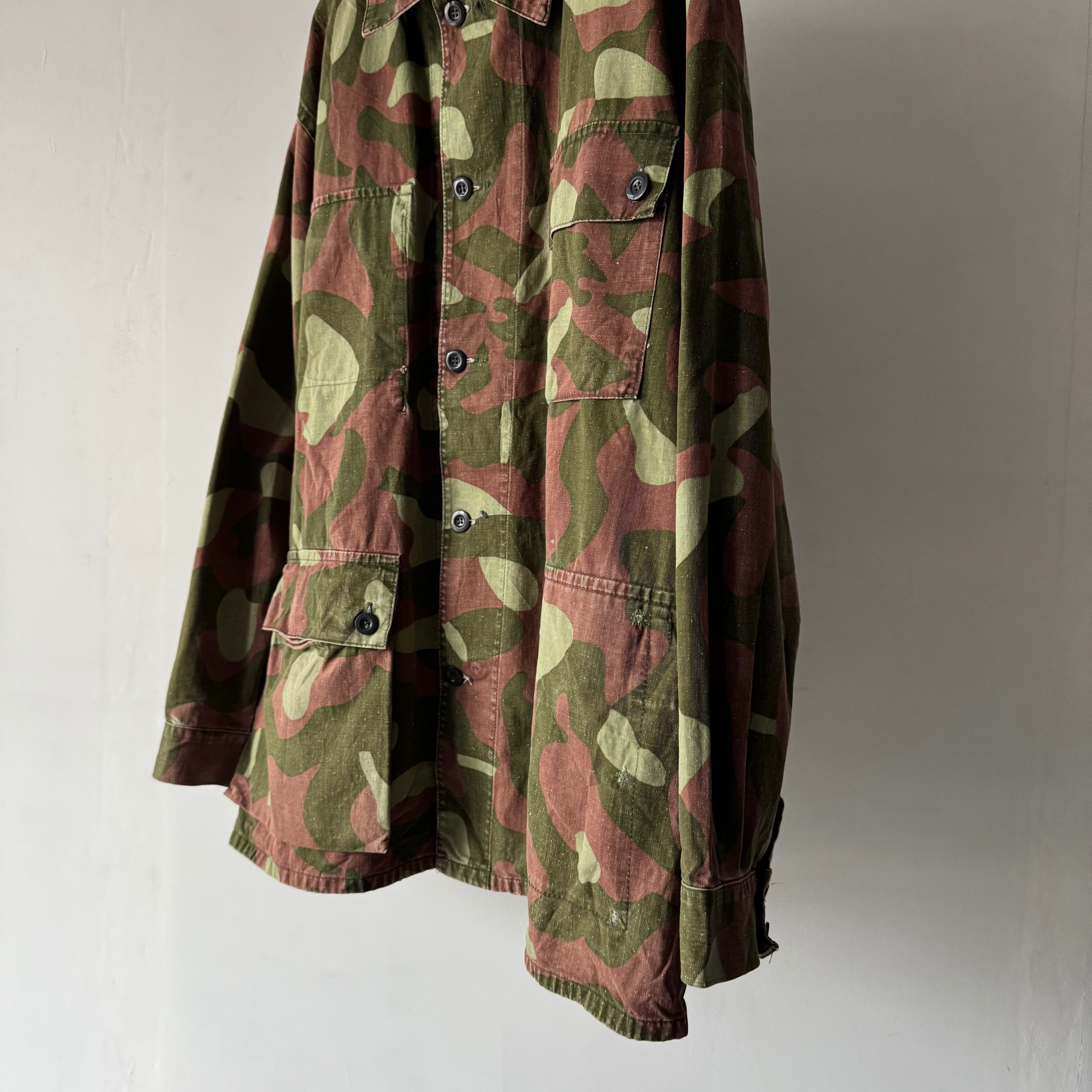 キューカンバー柄とも呼ばれる大判な迷彩にローテクな装飾が雰囲気抜群