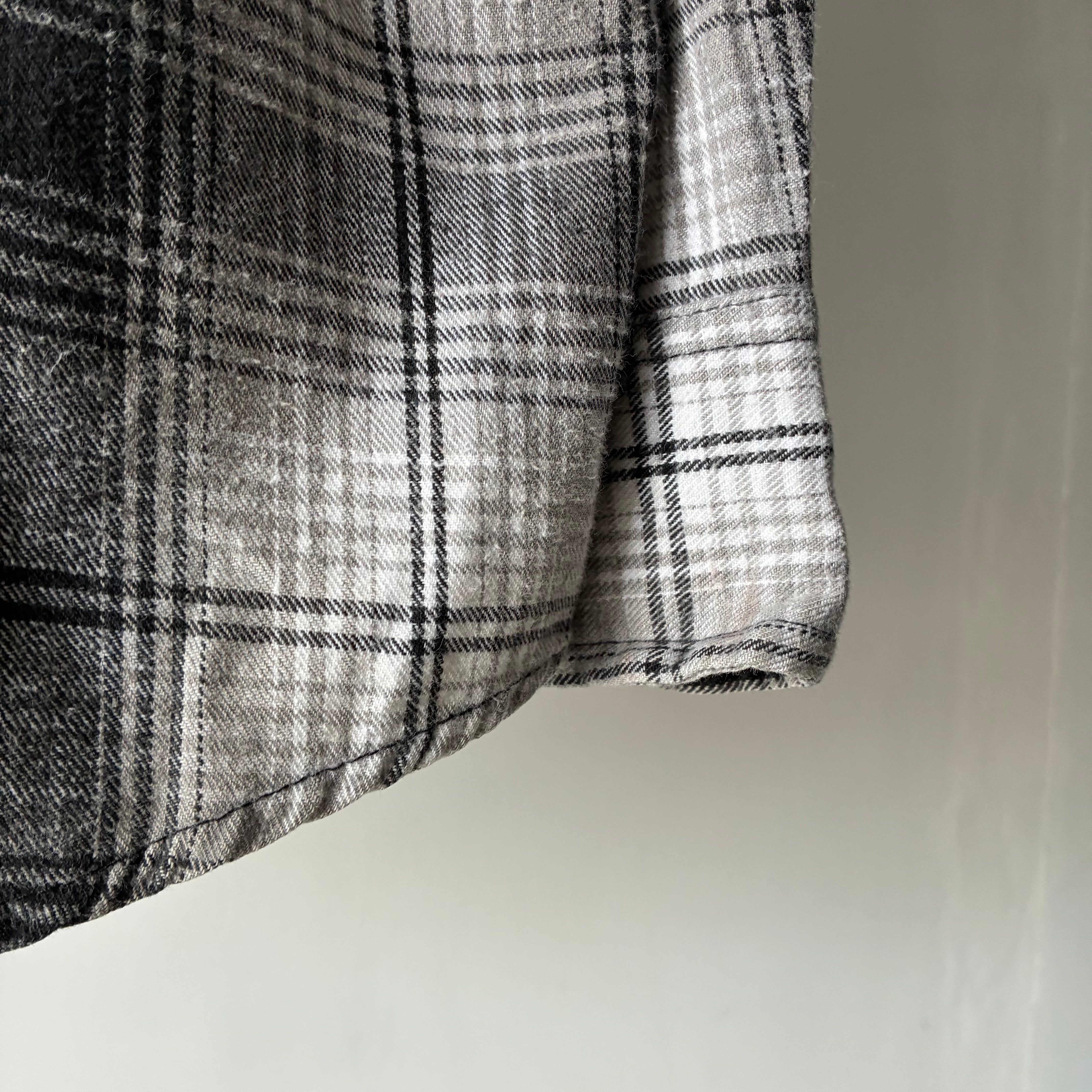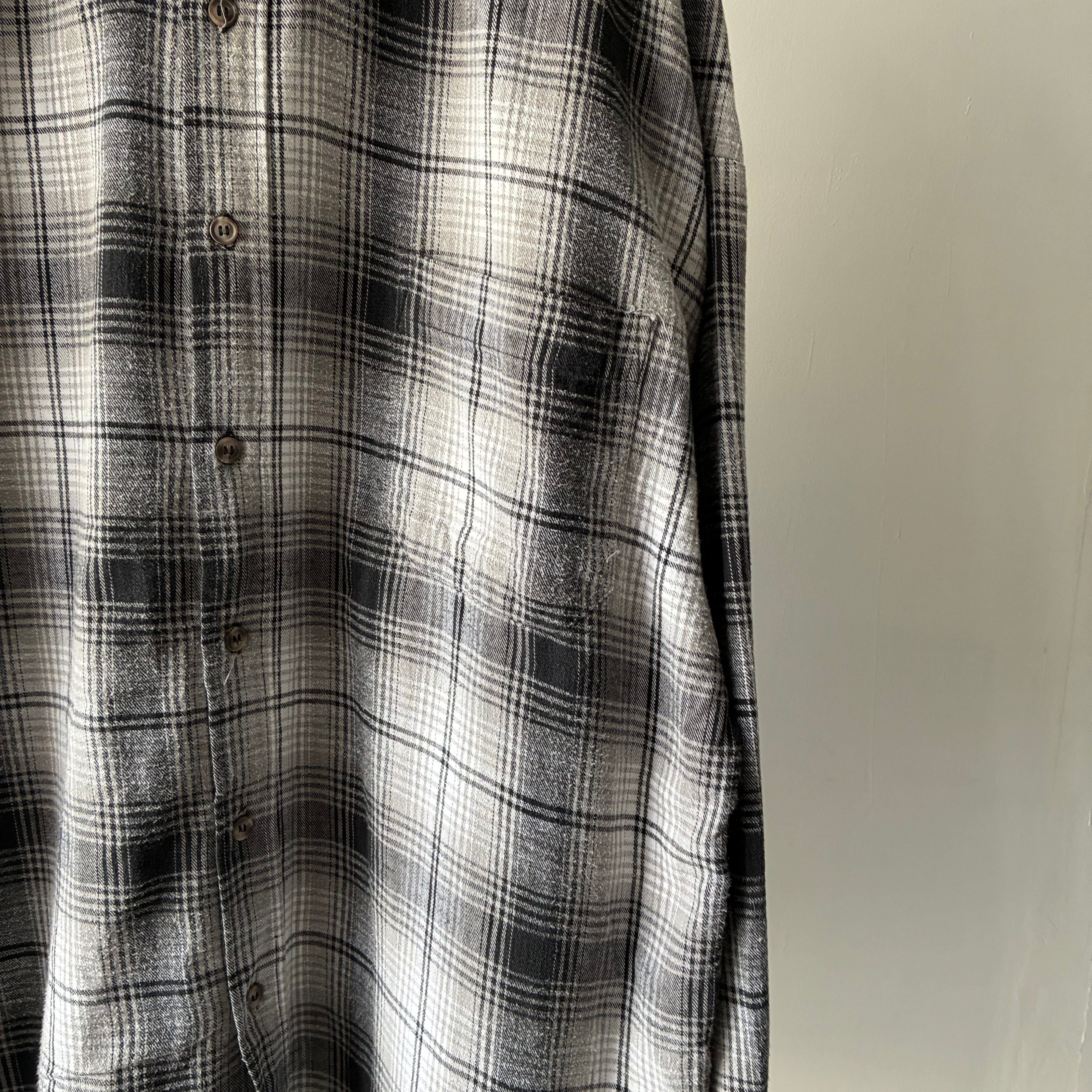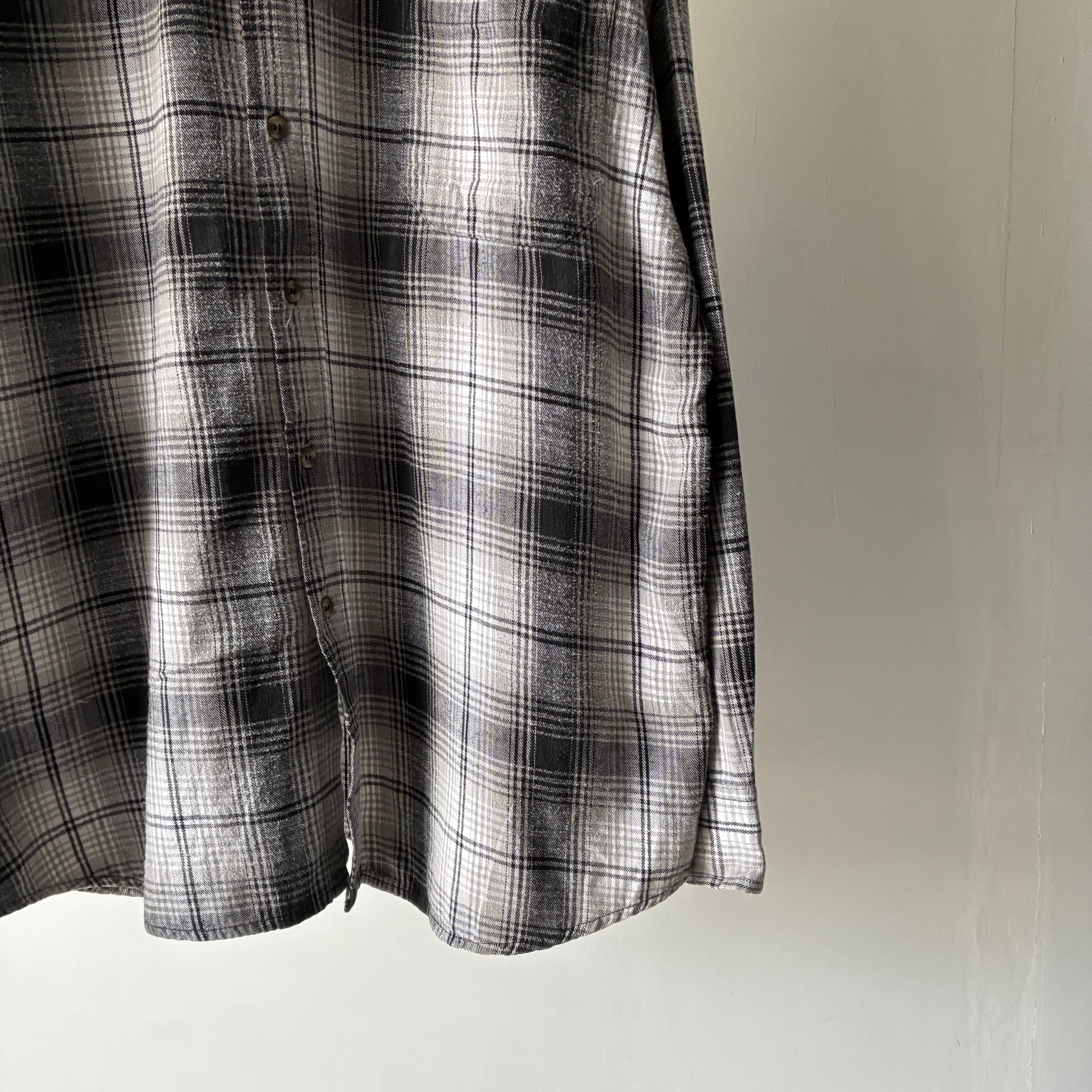 落ち着きのあるモノトーンでのチェックが映える汎用性の高いネルシャツ