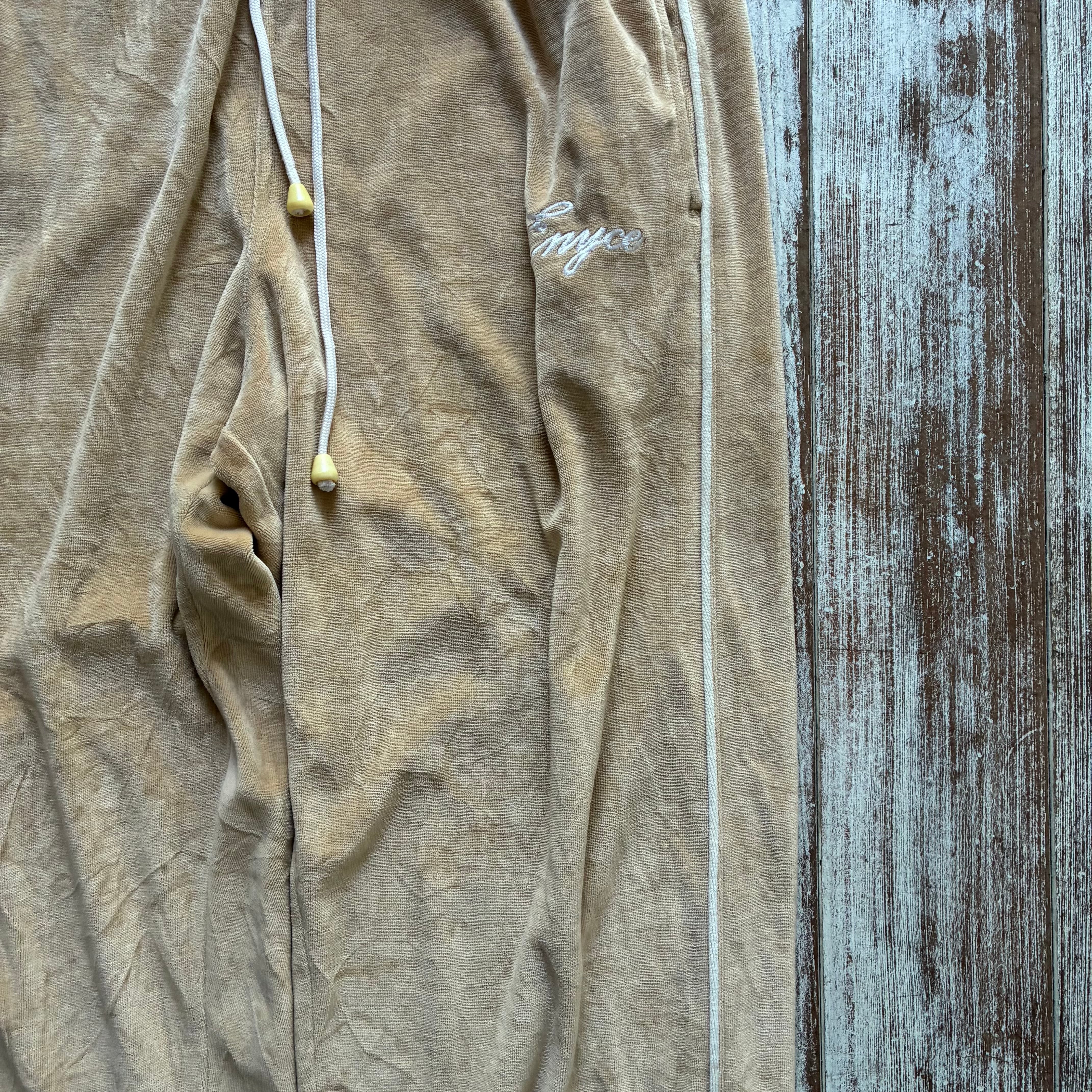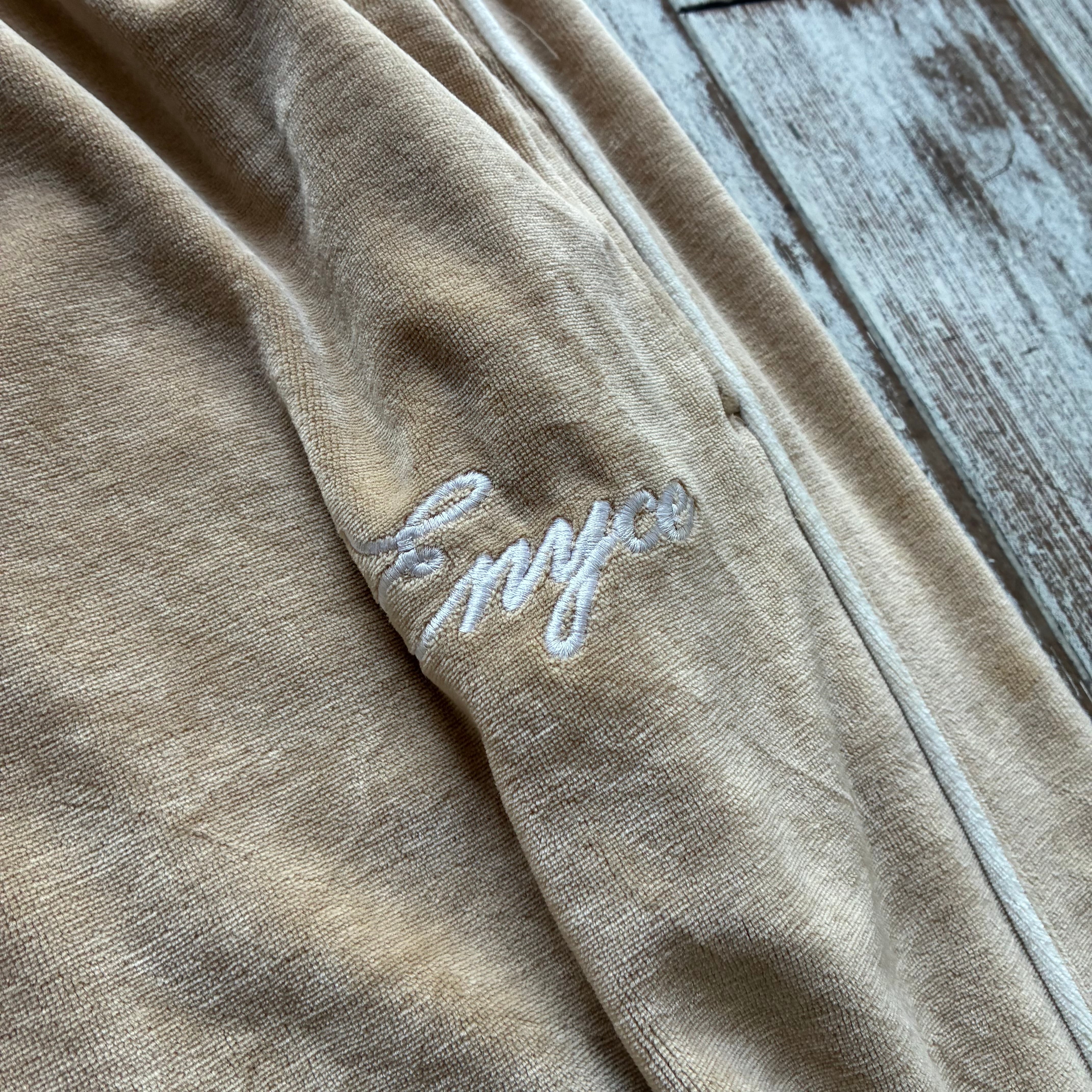 程よく太さの効いた落ち感のあるシルエットで使い勝手の良いベロアパンツ