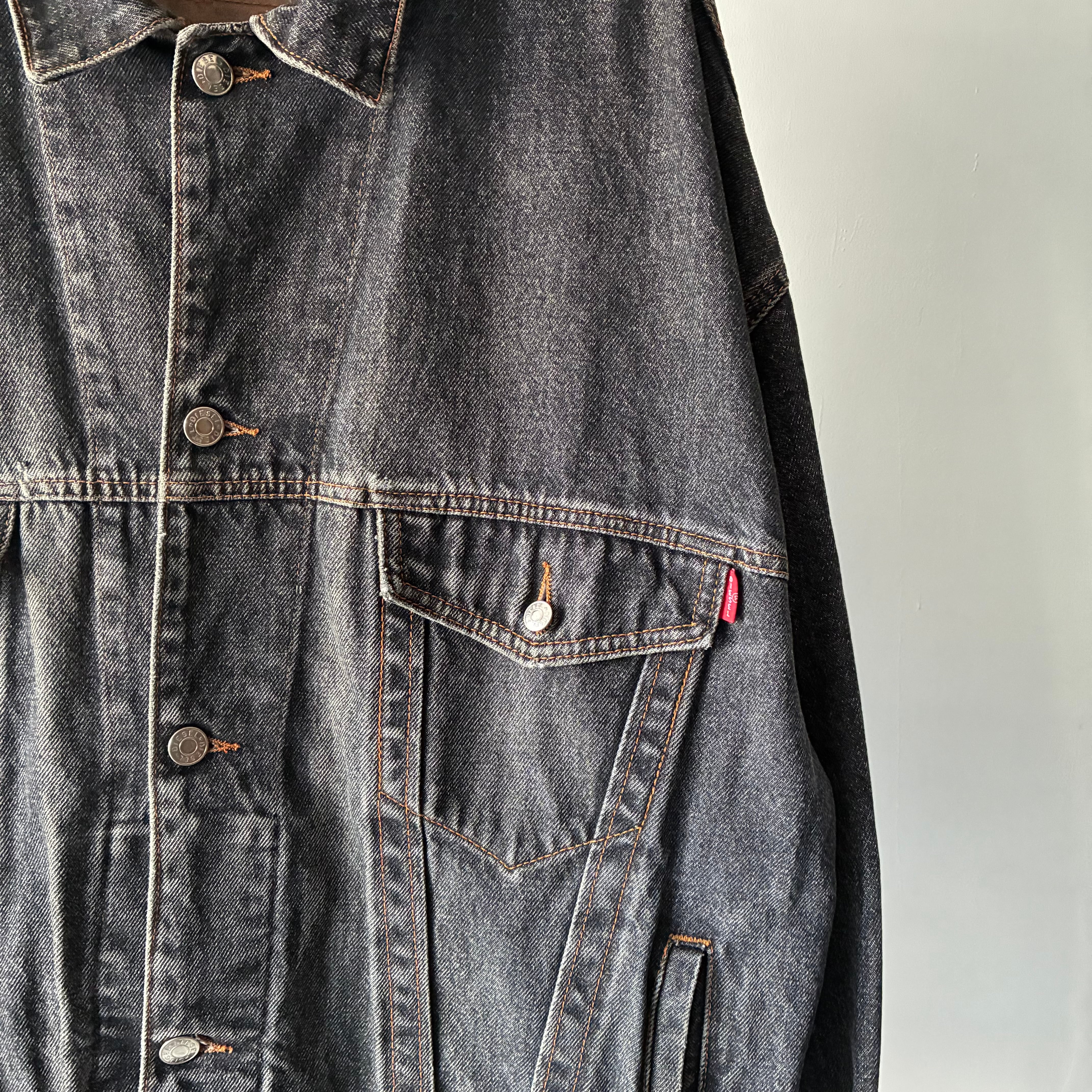 塩梅の良いウォッシュが効いたブラックデニムがスタイリッシュなディーゼルのトラッカージャケット