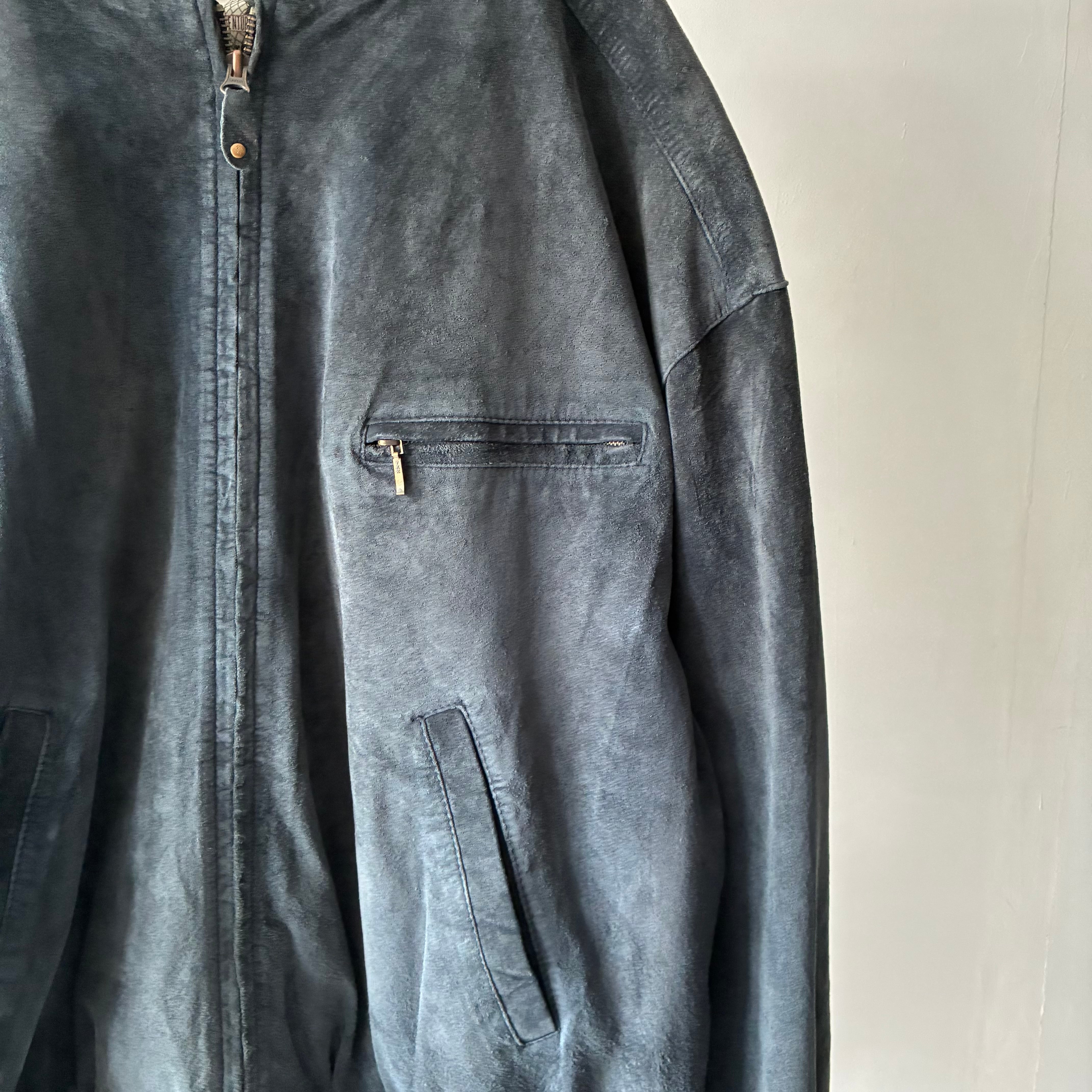 ハリとしなやかさを兼ねた袖通しの良いスエードレザーで墨黒のようなカラーリングもスタイリッシュ