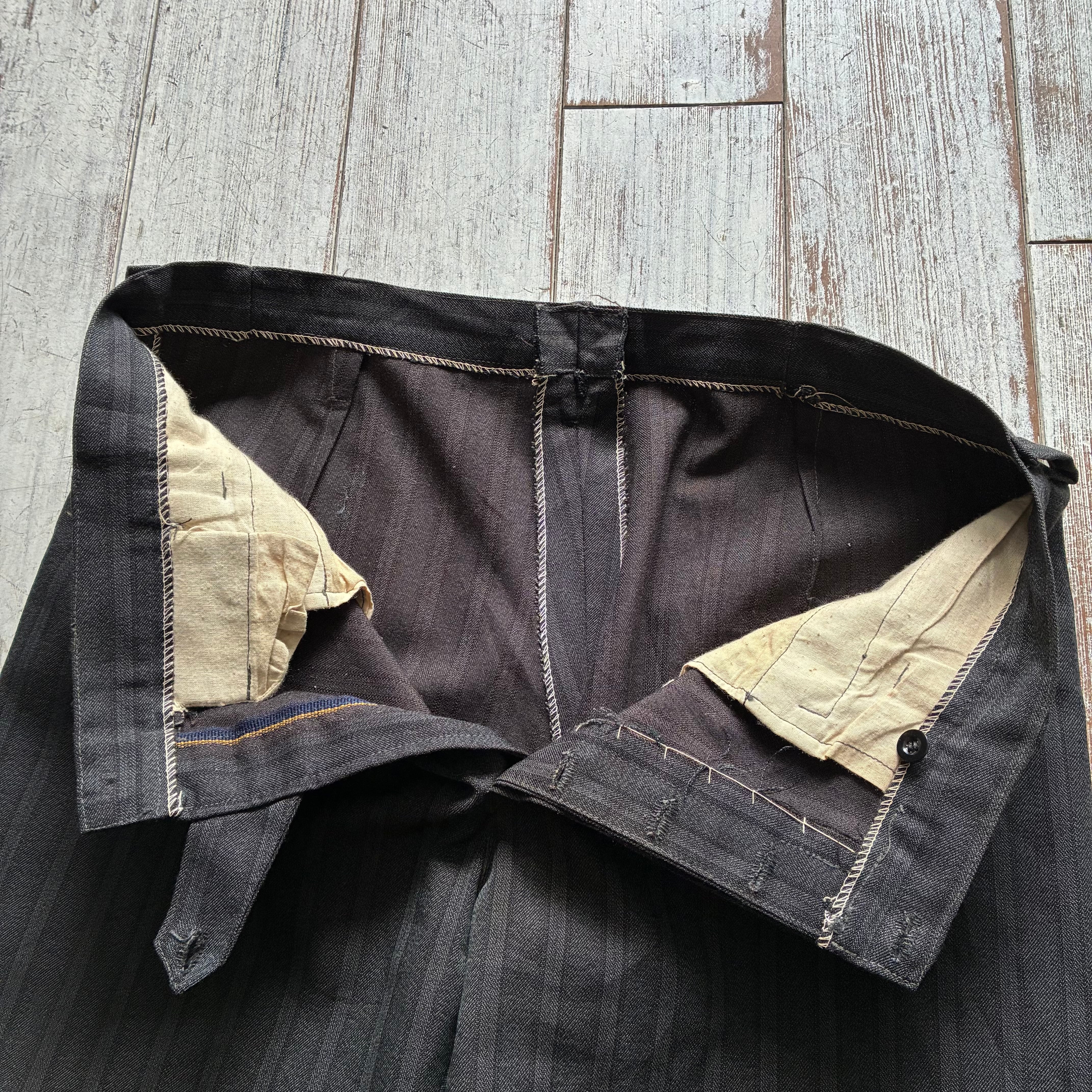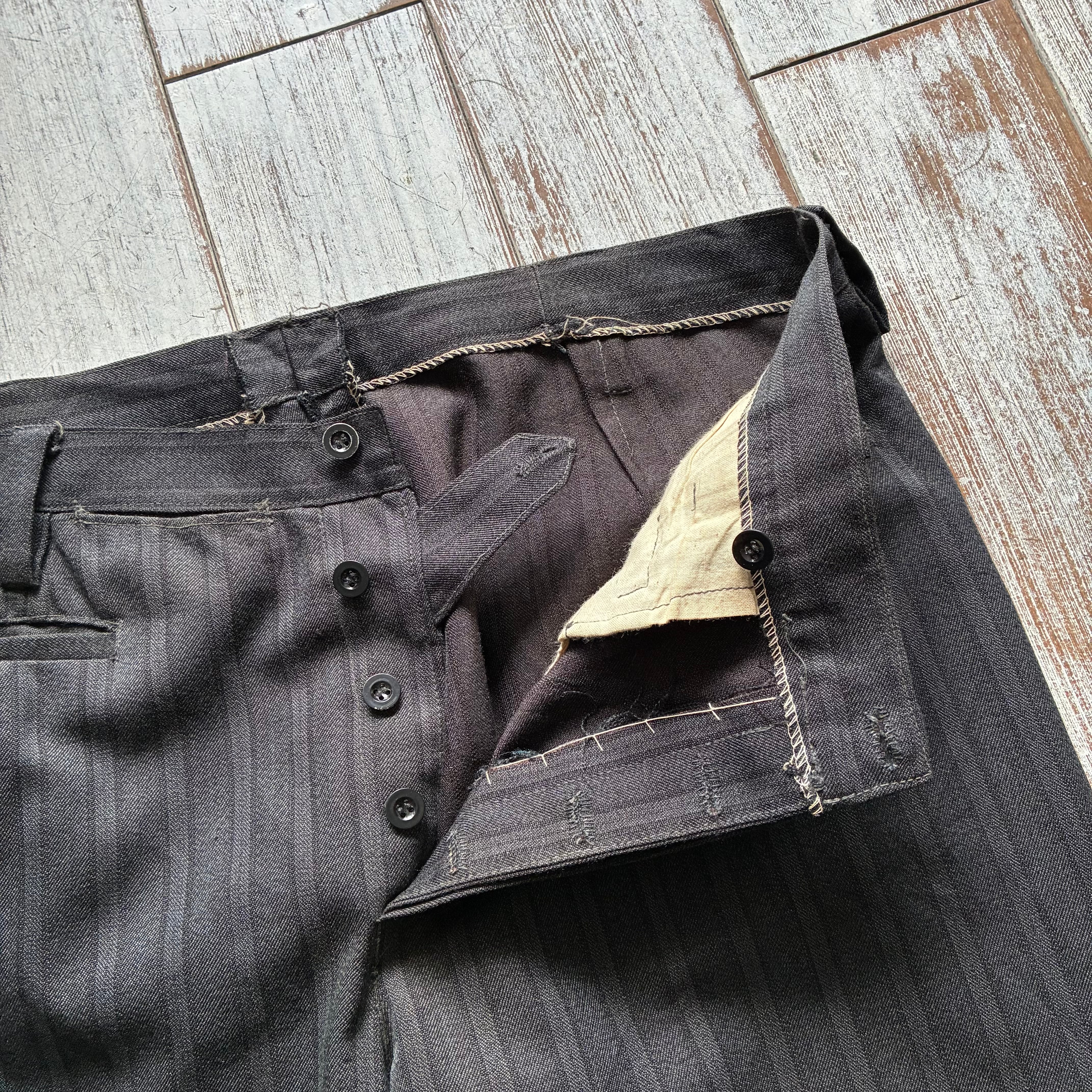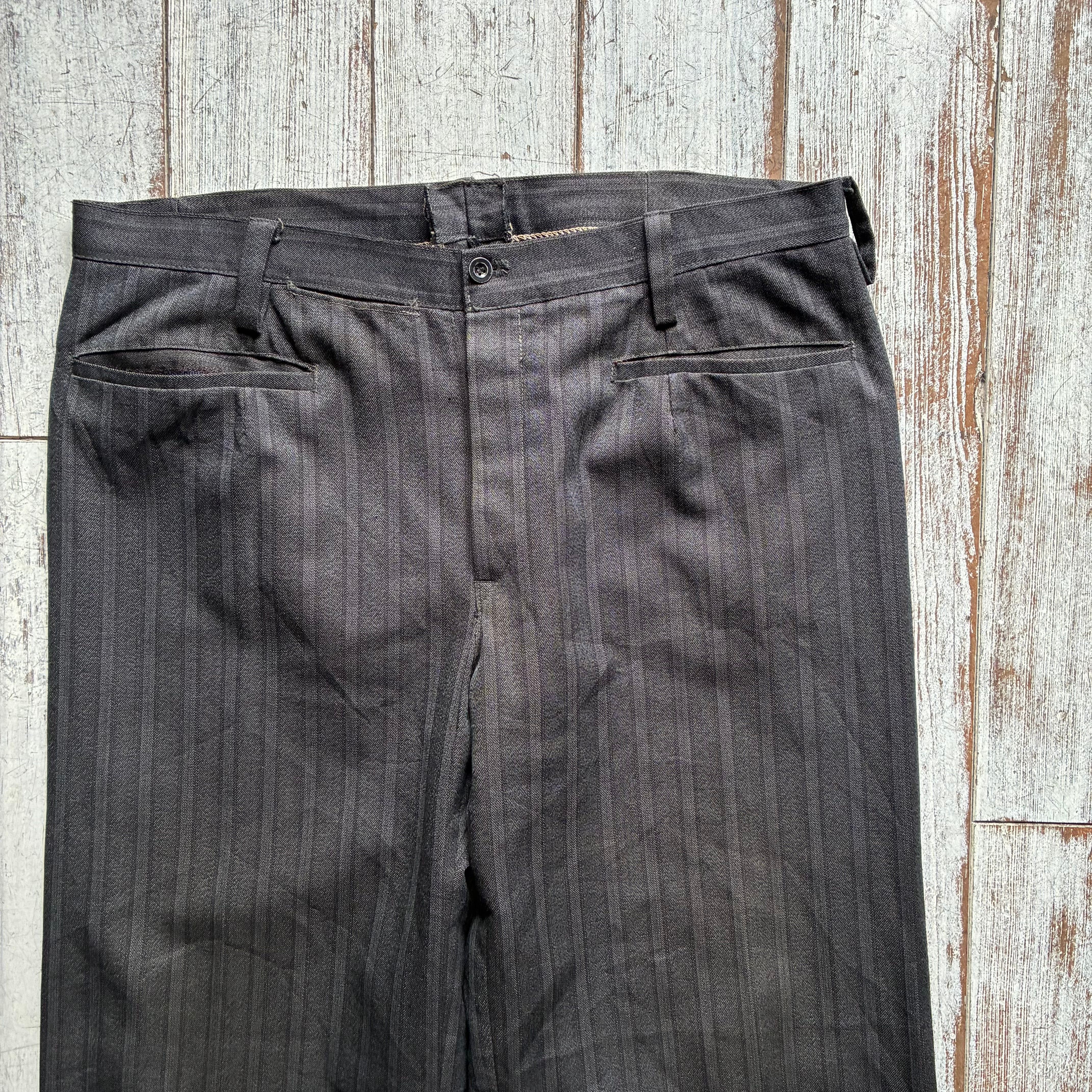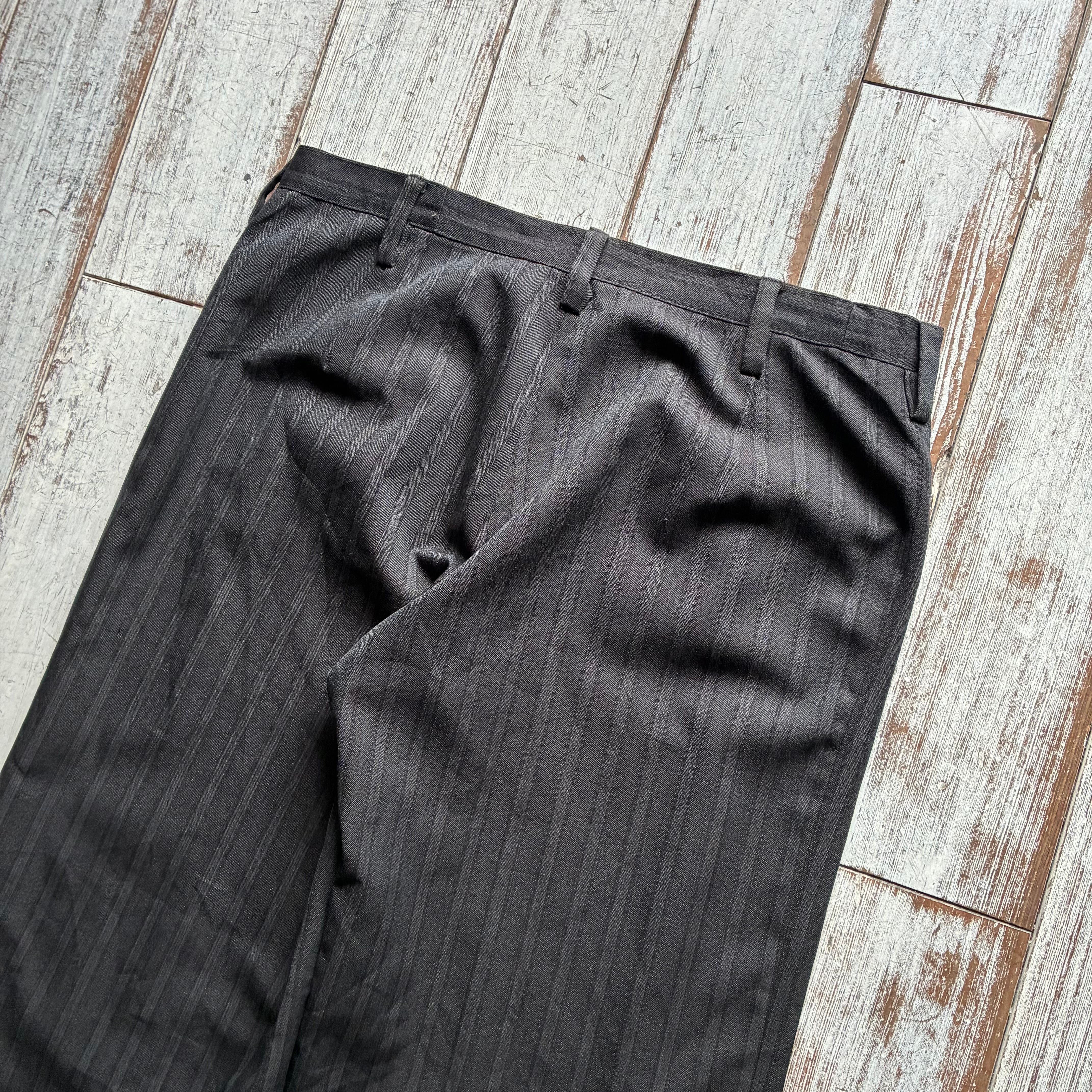 チャコールグレーを基調とした落ち着きのあるスマートなストライプが映えるデイリーユースなスラックス