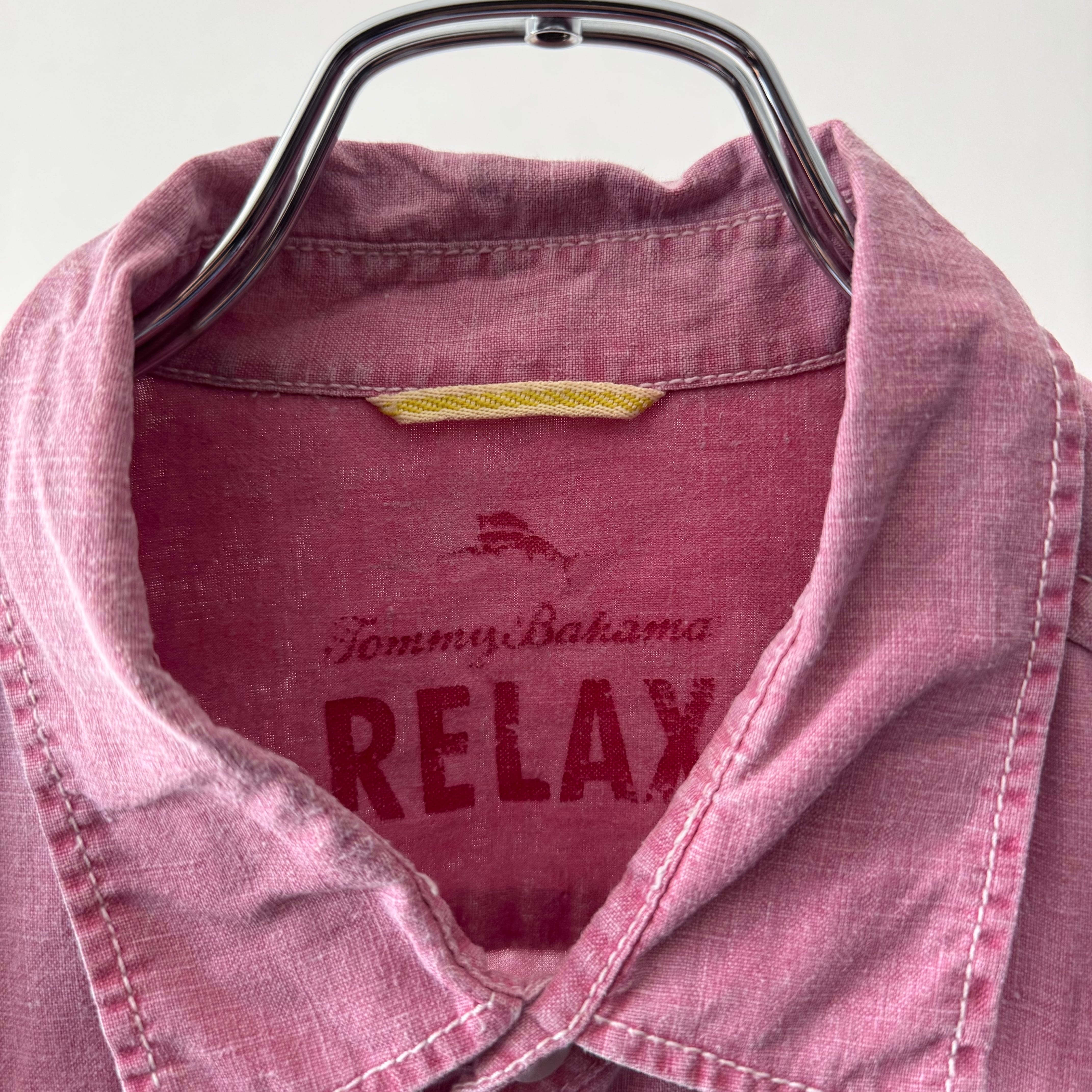 淡いピンクカラーが印象的なトミーバハマのリネンシャツ