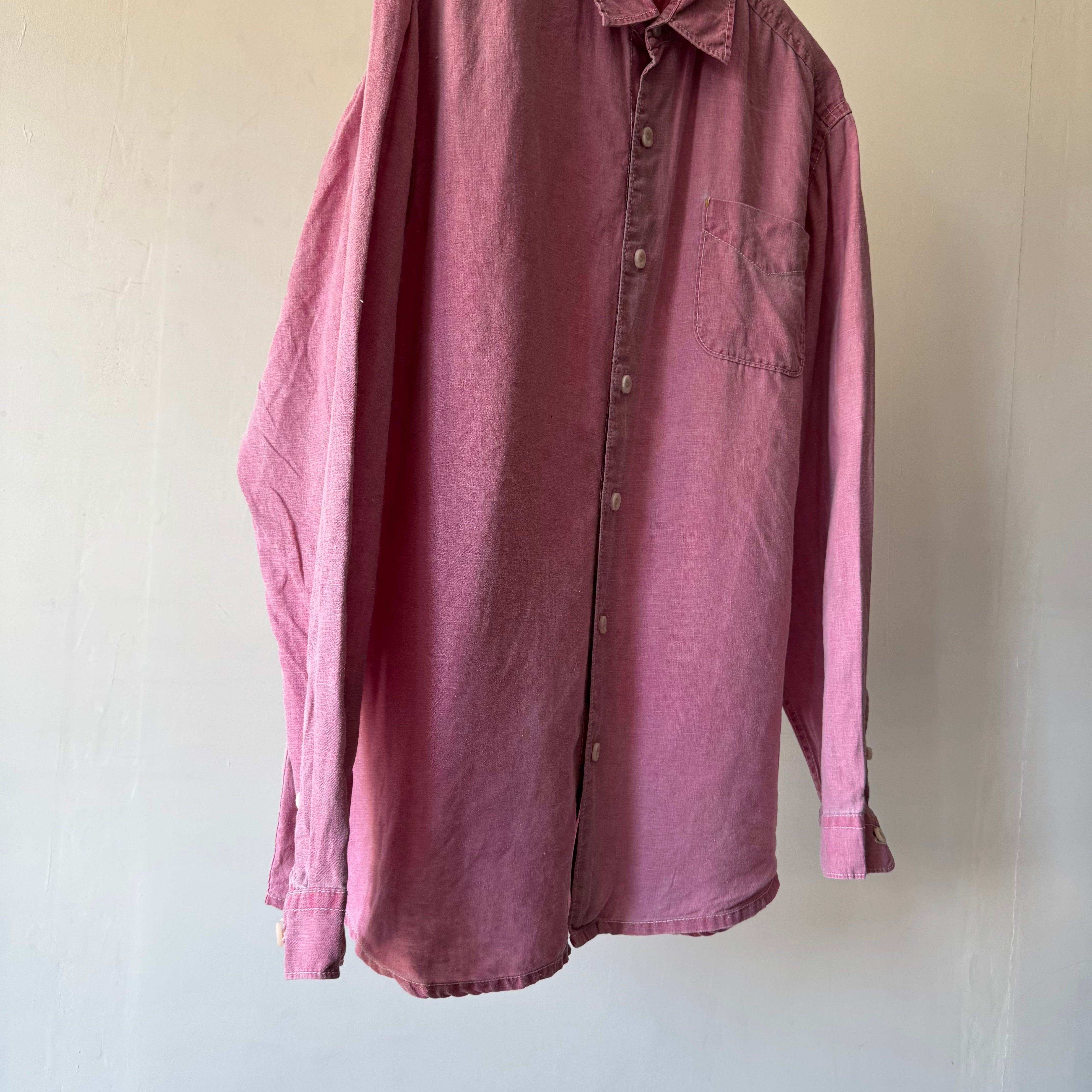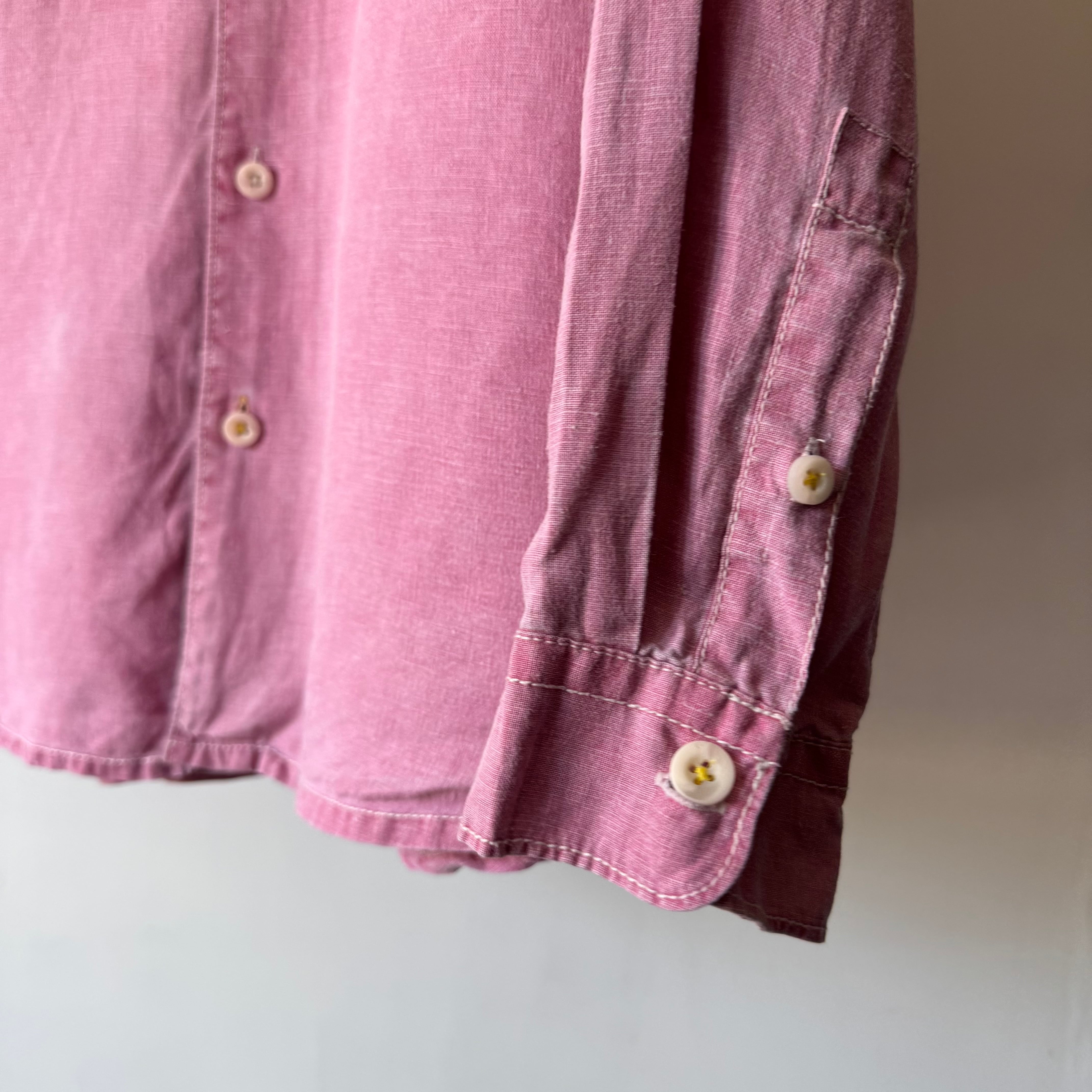 シンプルながら雰囲気のある、大人っぽいピンクカラーのシャツです