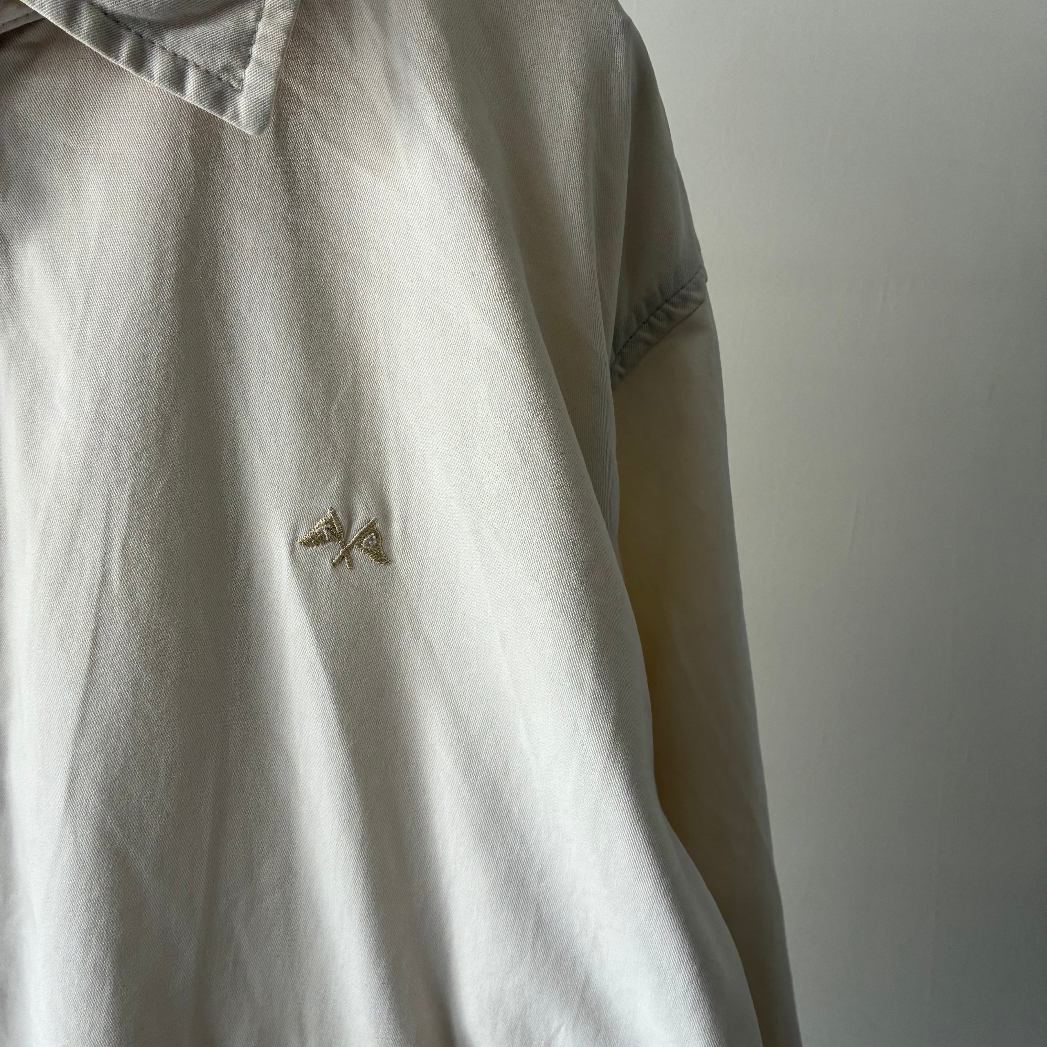 清潔感のあるホワイトのカラーリングで胸元にはトーマス・バーバリーの名を冠したフラッグ型の刺繍ロゴ