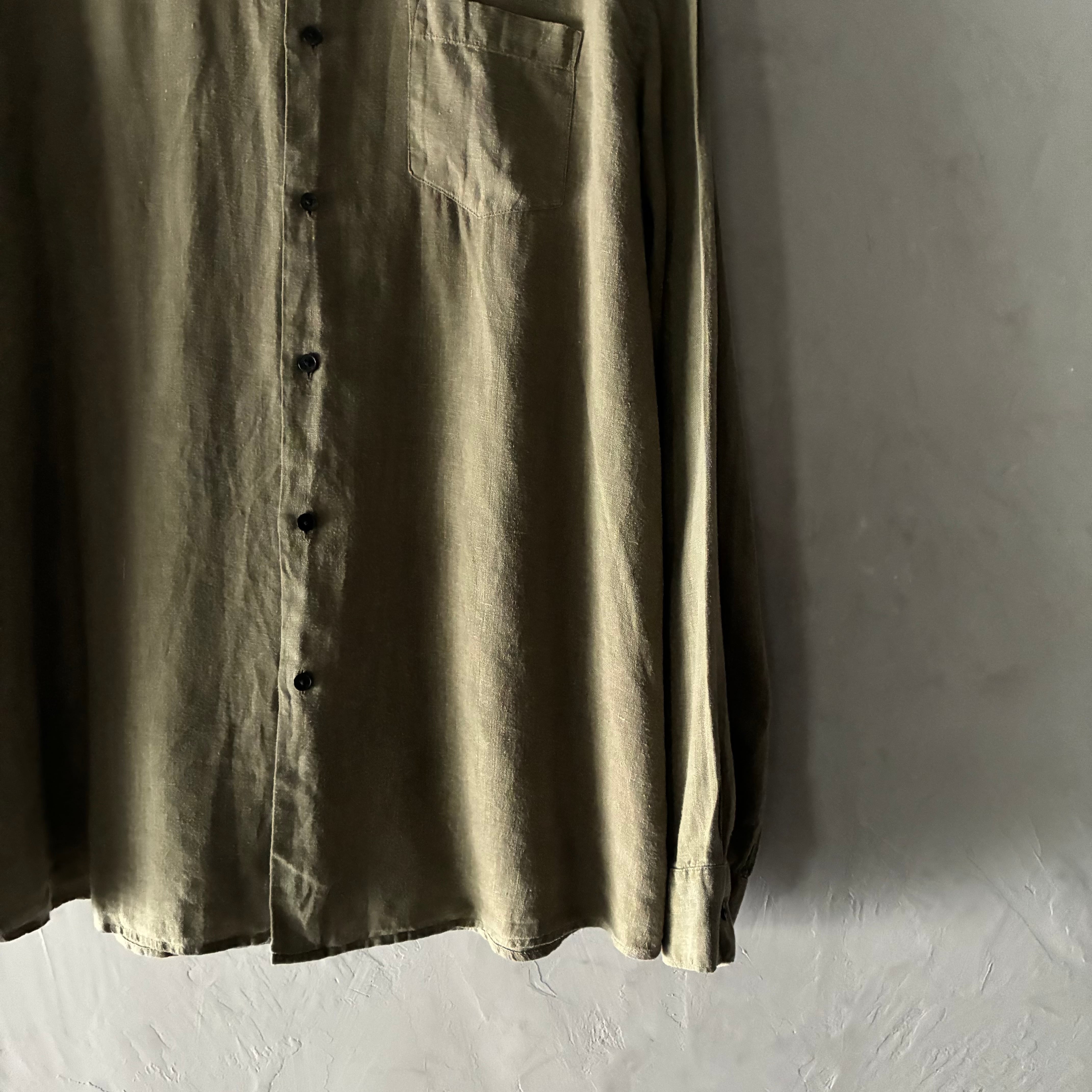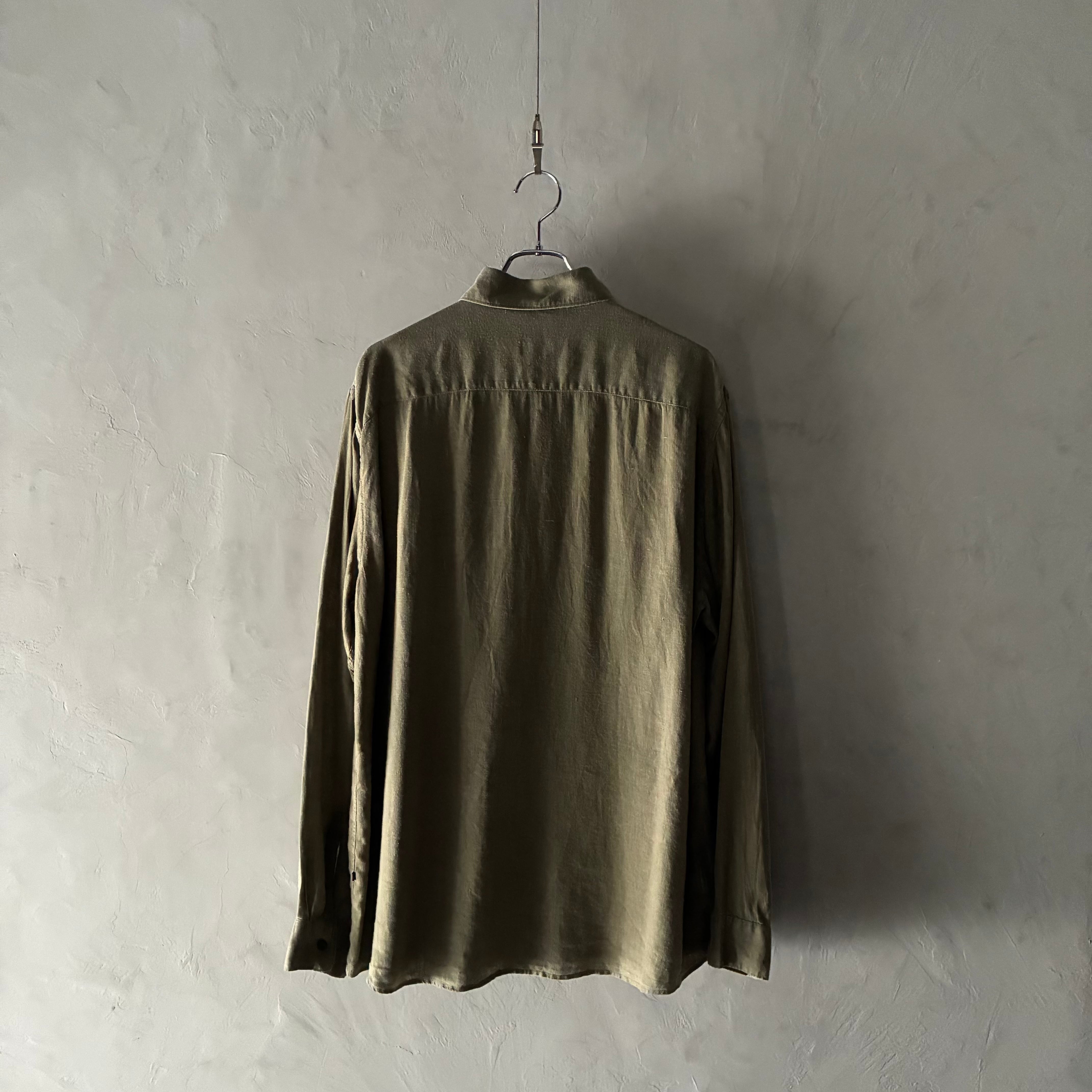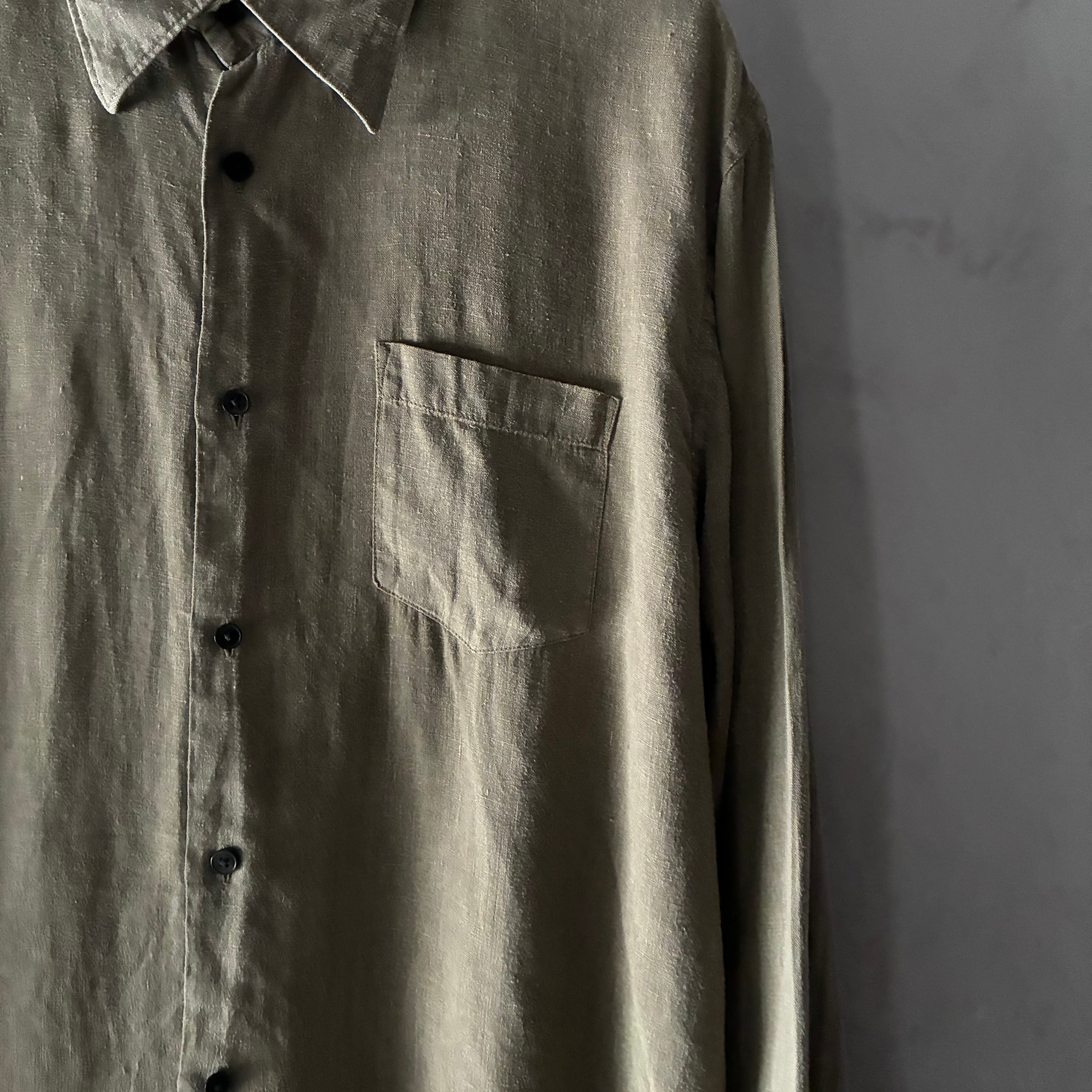 淡いカーキのような形容しがたいお色で胸ポケ仕様のベーシックなデザイン