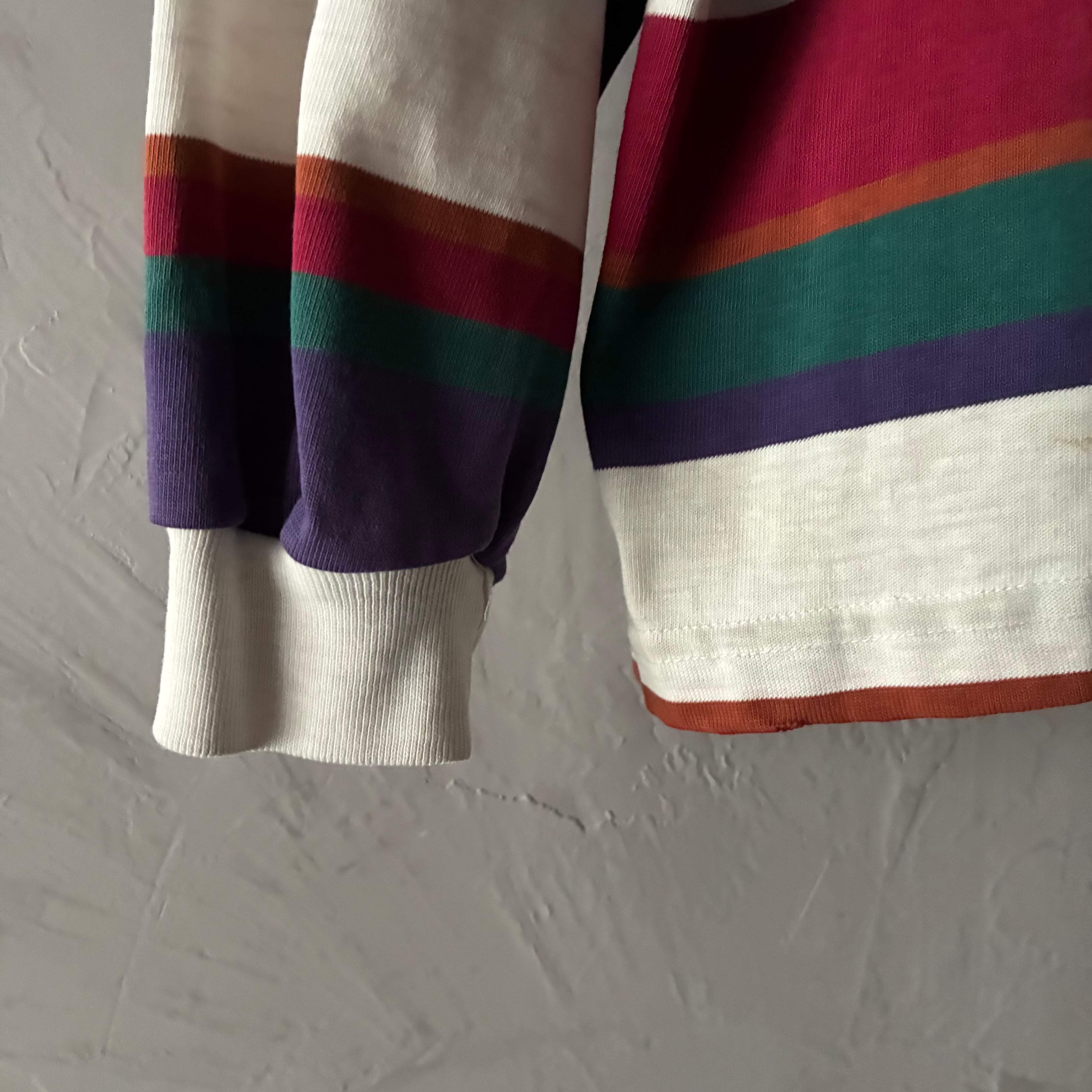 多色かつワンリピートの太い手の込んだボーダーが程よい抜け感もあってスタイリッシュ