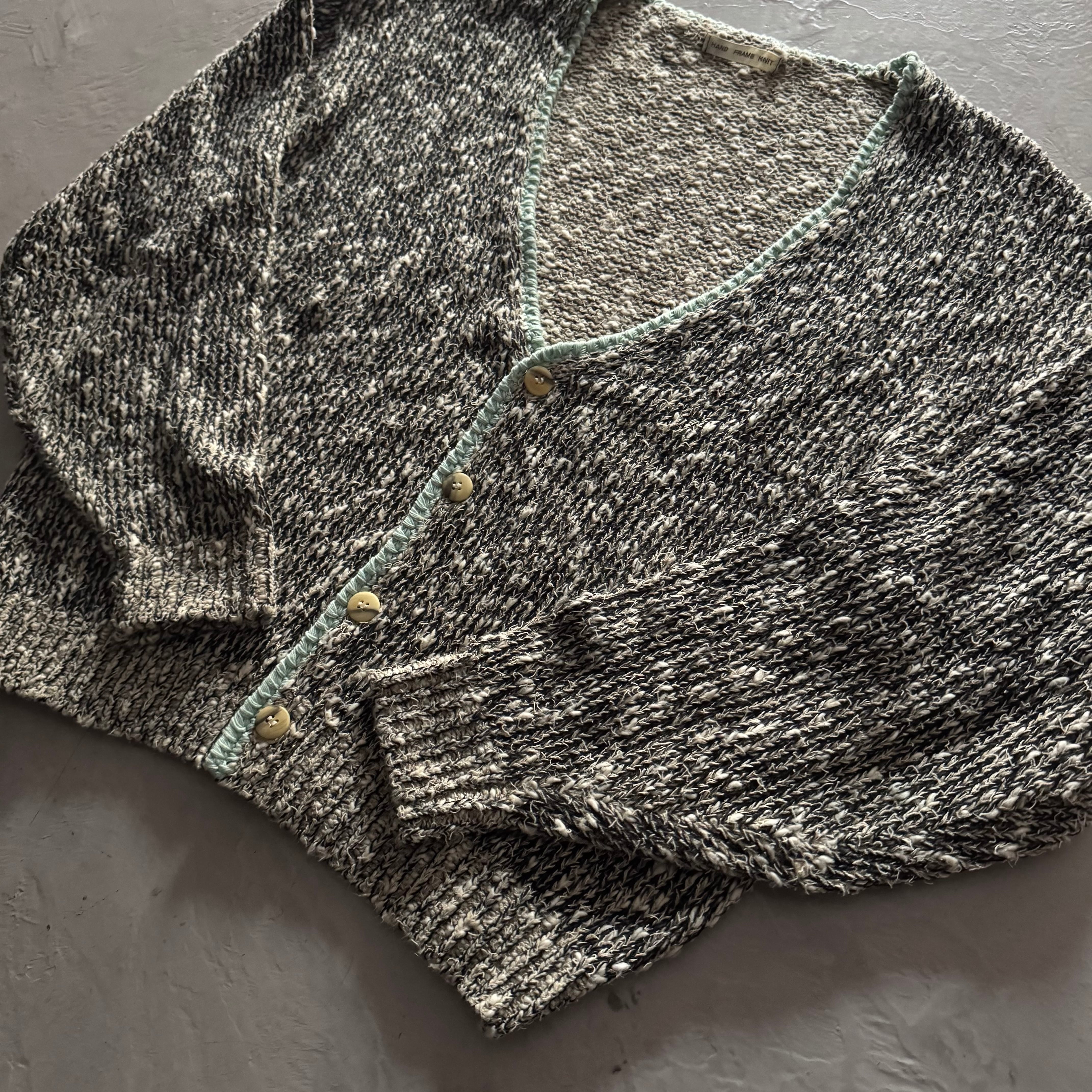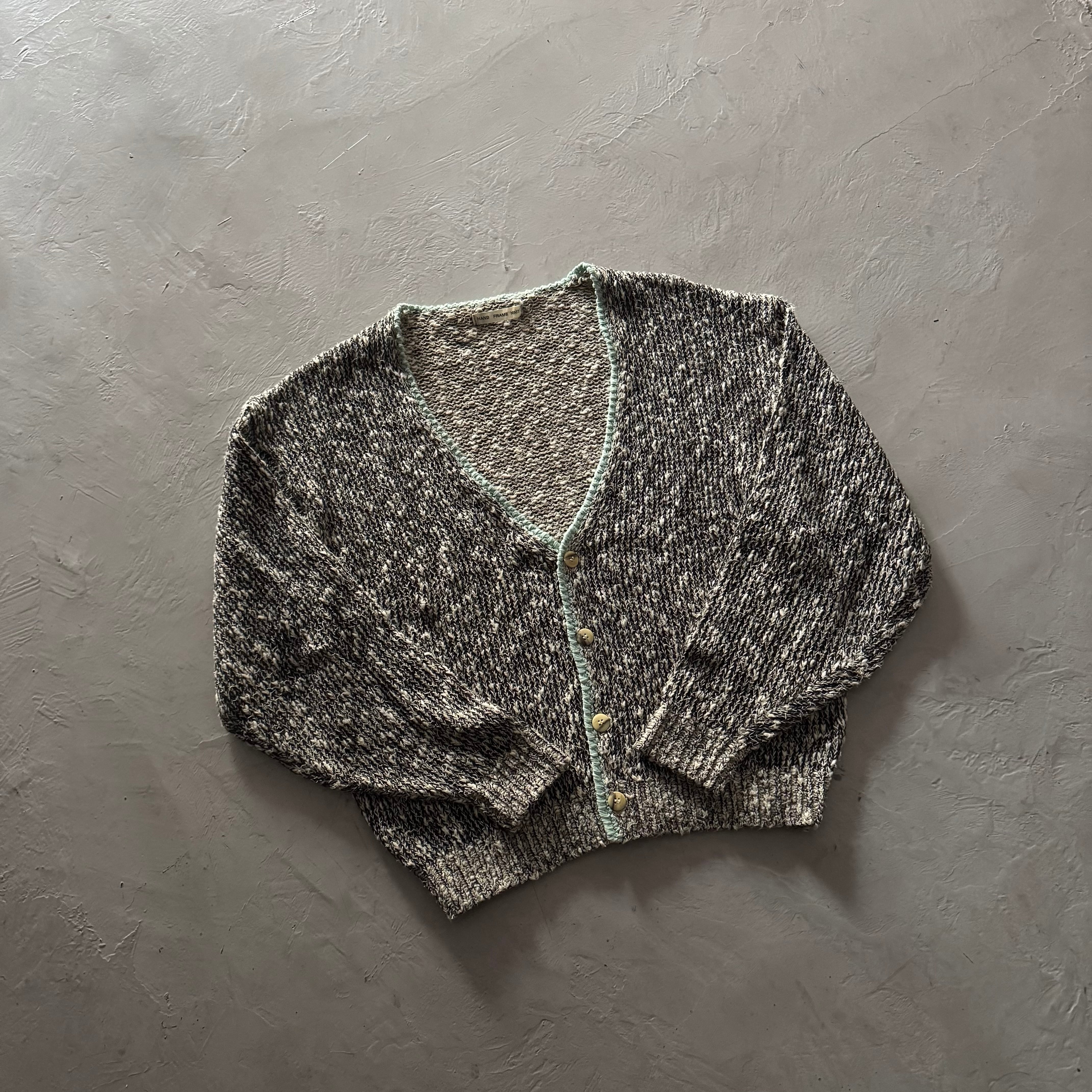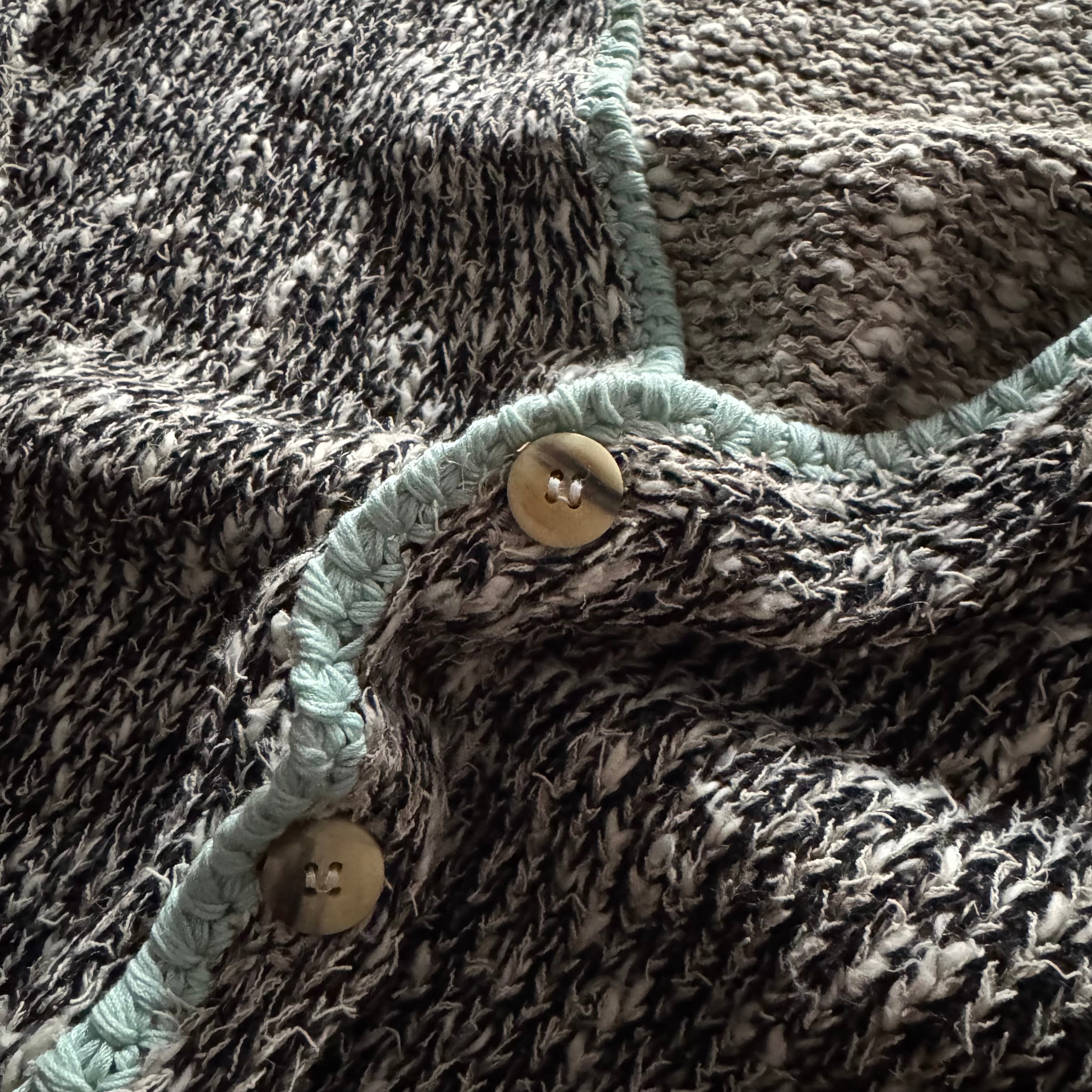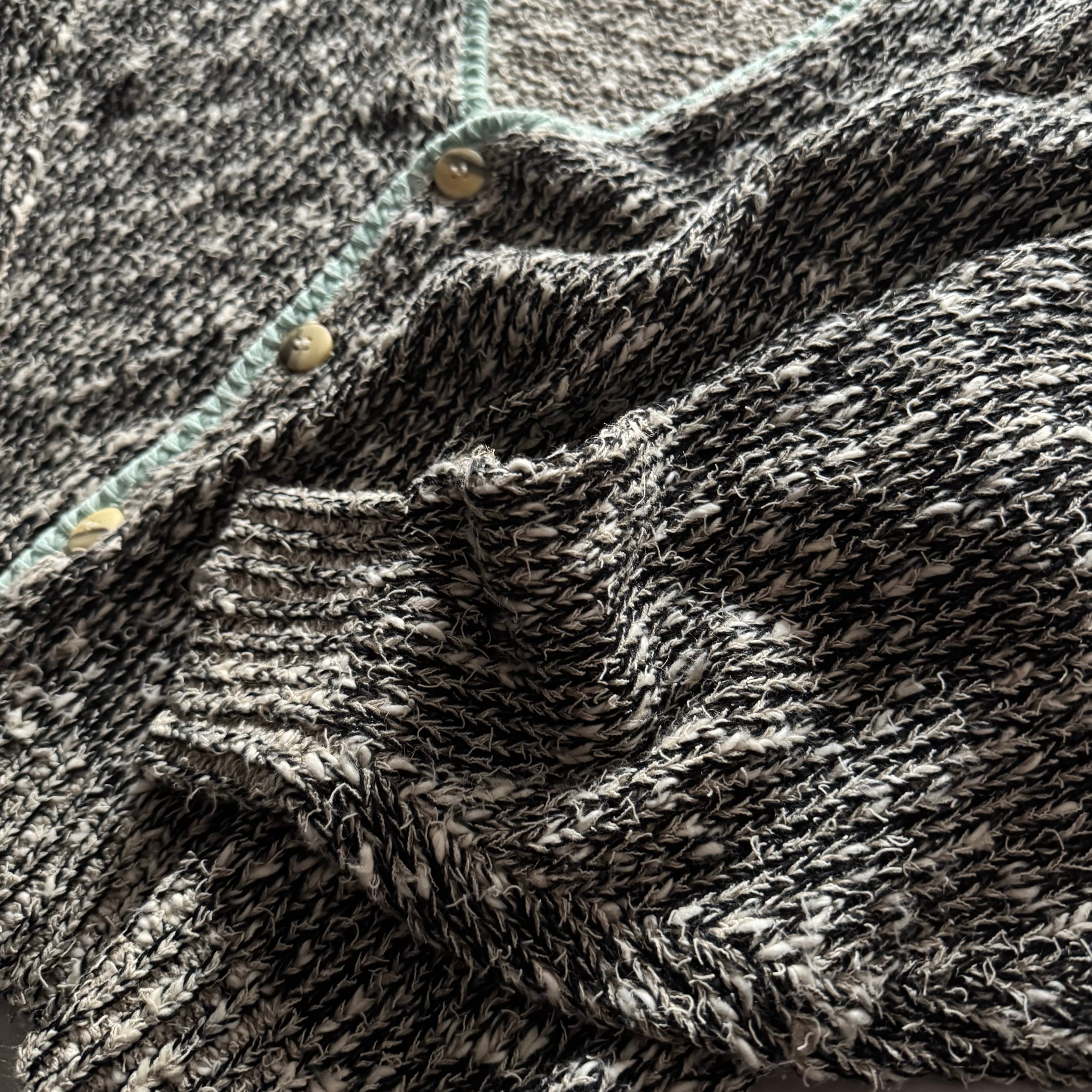 グレー×ホワイトの凹凸のあるミックスデザインに、ミントグリーンのパイピングが効いた洒落た一着
