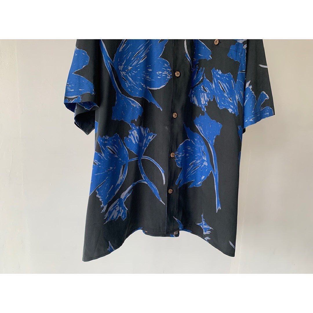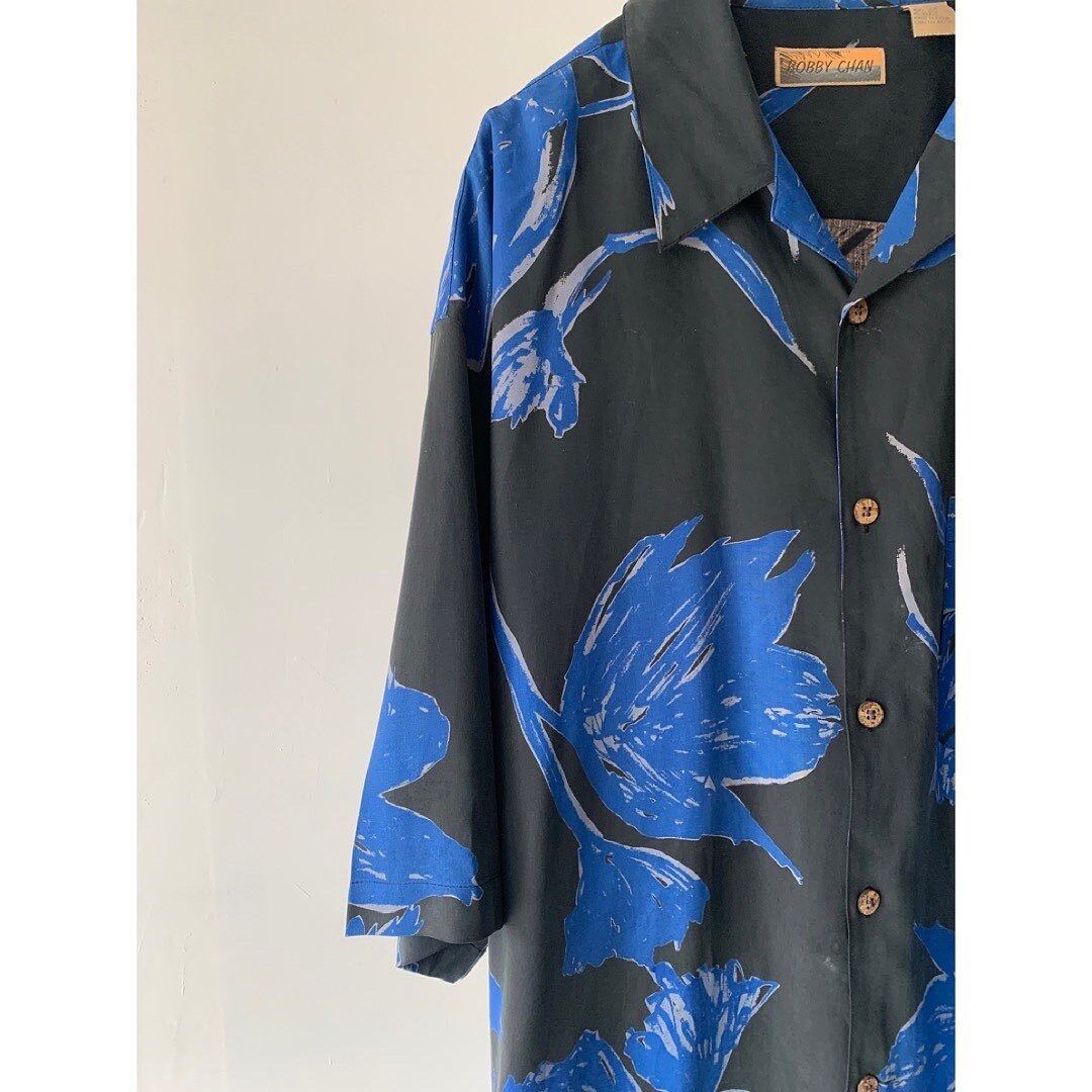 ブラックベースにブルーで凛とした大人の花柄です