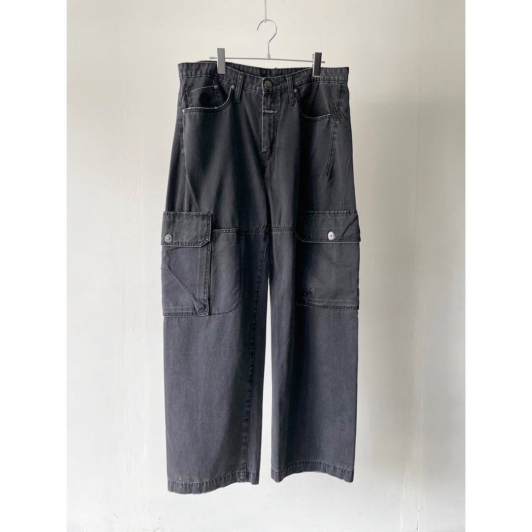 無骨で程よいフェード感のあるブラックのデニムカーゴ