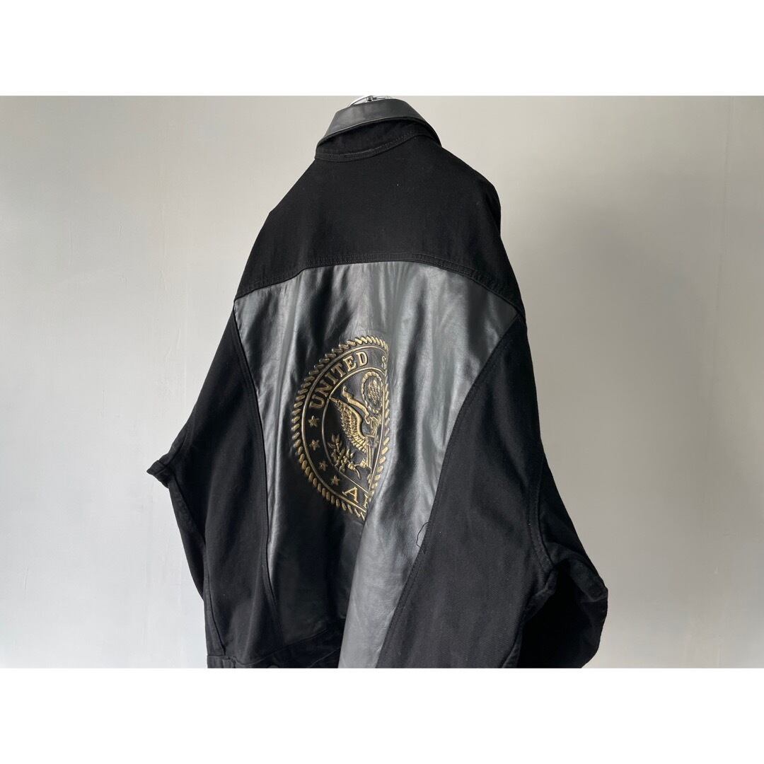 ブラックのレザー切り替えデニムジャケット