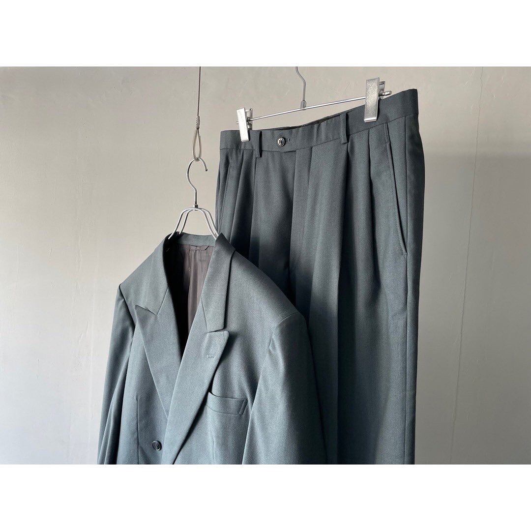 グレーがかった燻みブルーのダブルボタンセットアップ