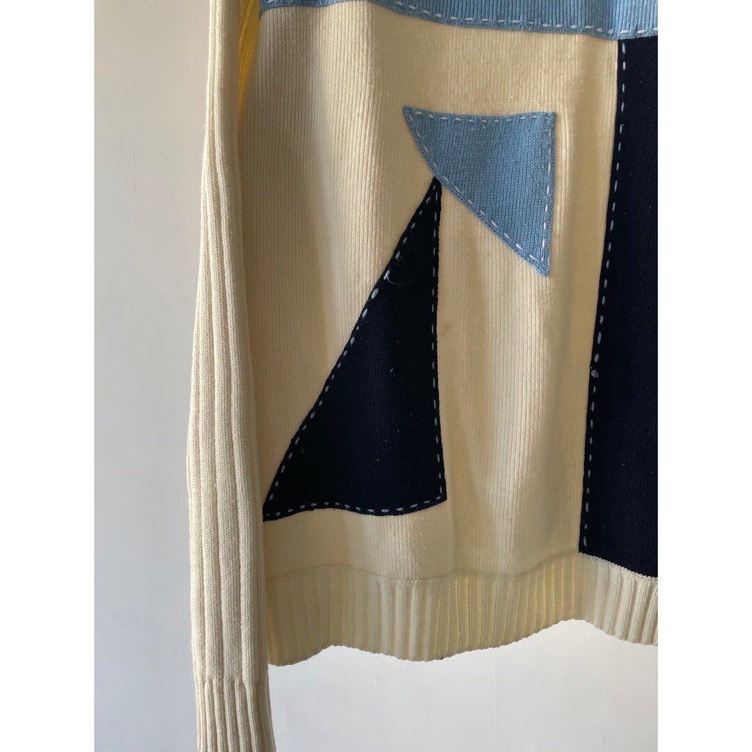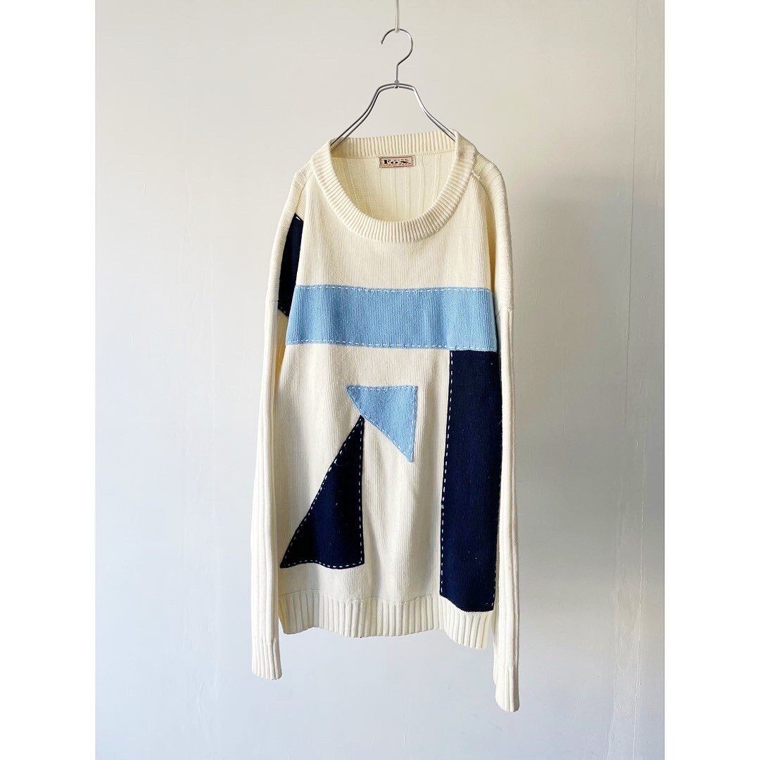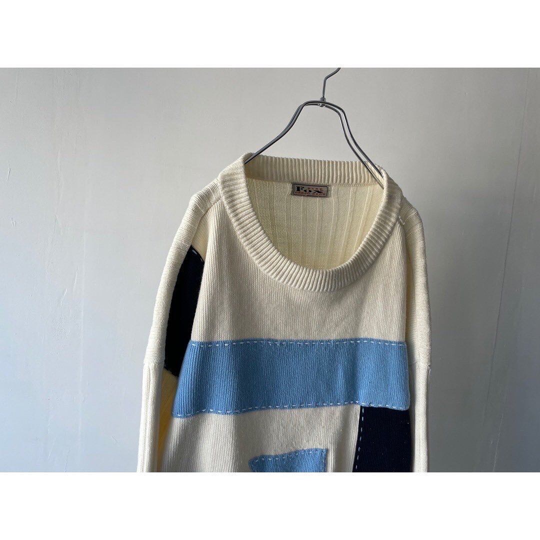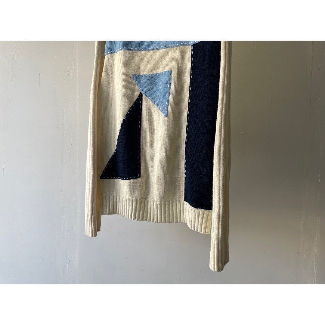 ホワイトベースに寒色のパネルニット