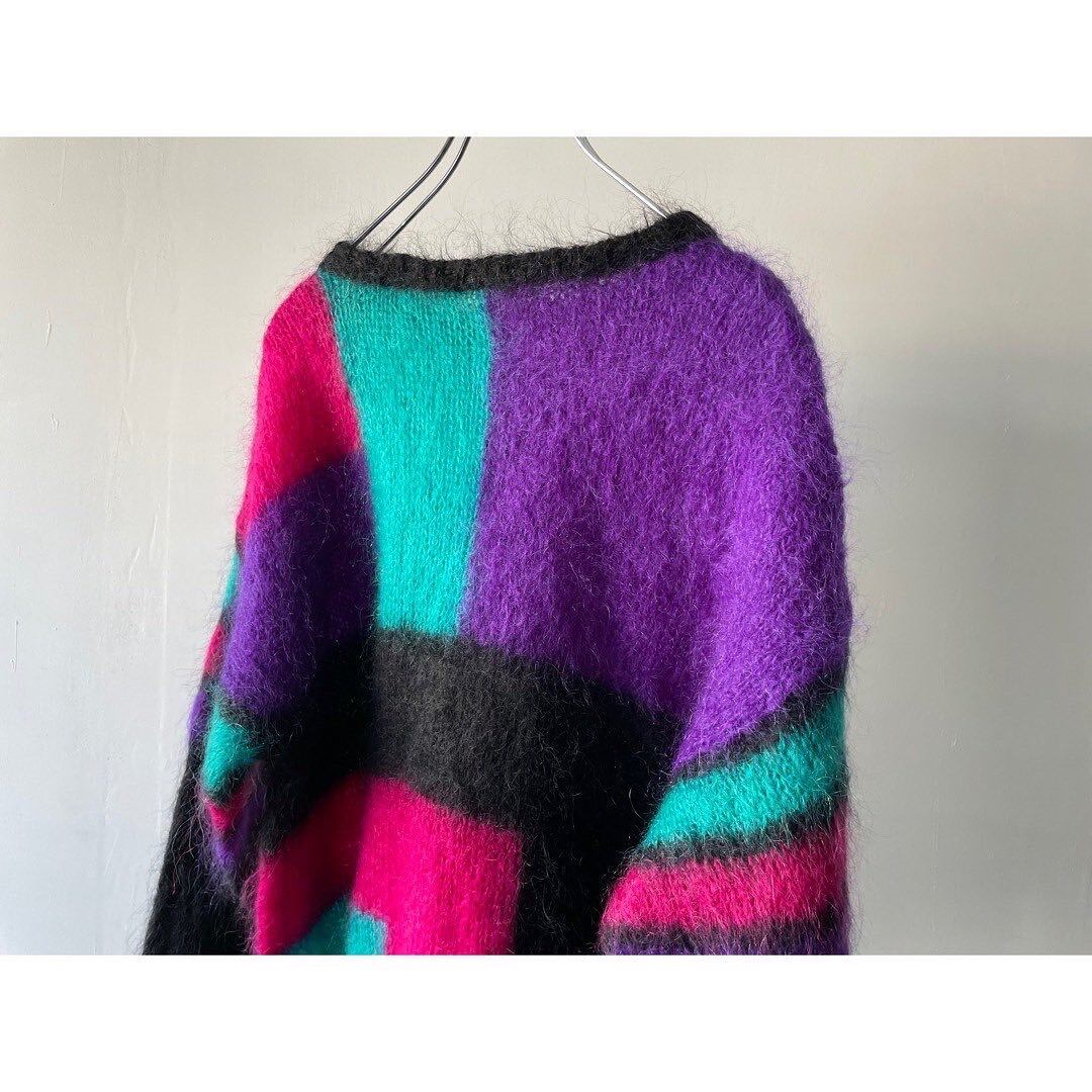 モヘア83%の厚手で毛足の長いニット