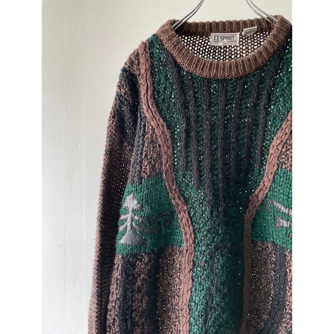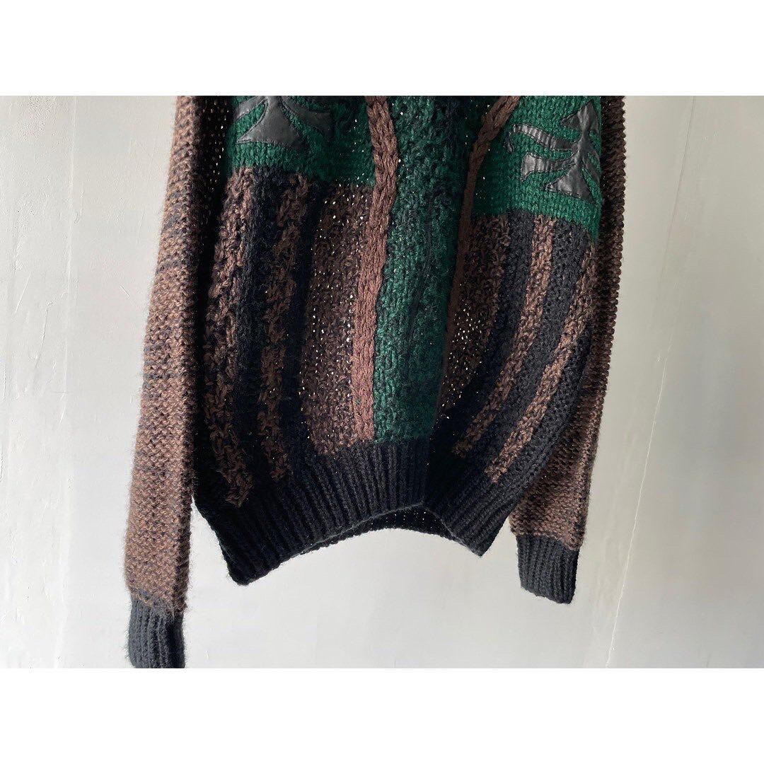 レザー切り替えのお洒落な3Dニット