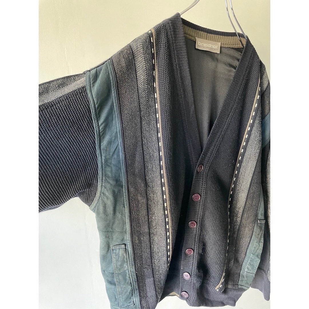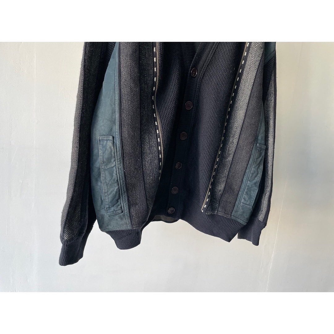 フェイクスエード切り替えのニットカーディガンブルゾン