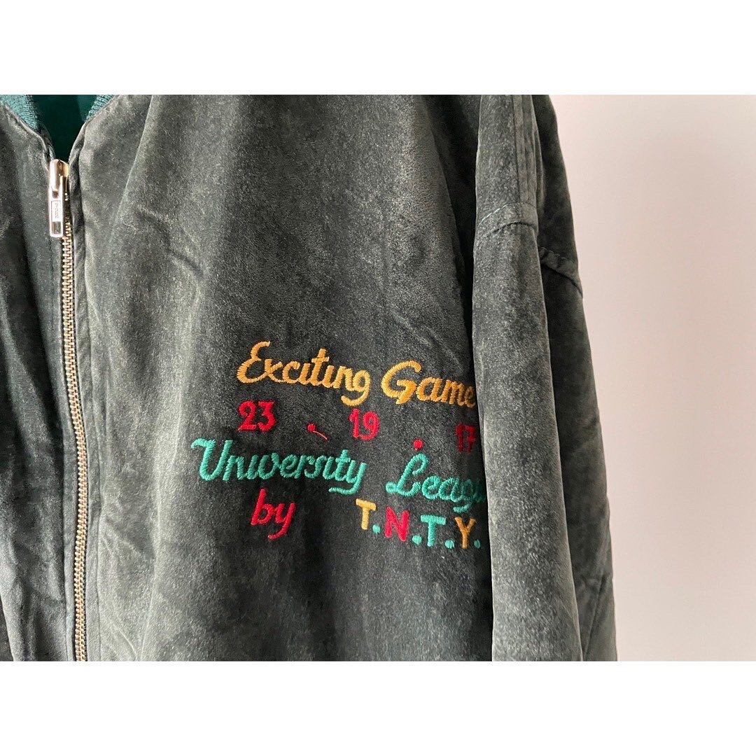 カラフルな刺繍がお洒落なモスグリーンブルゾン