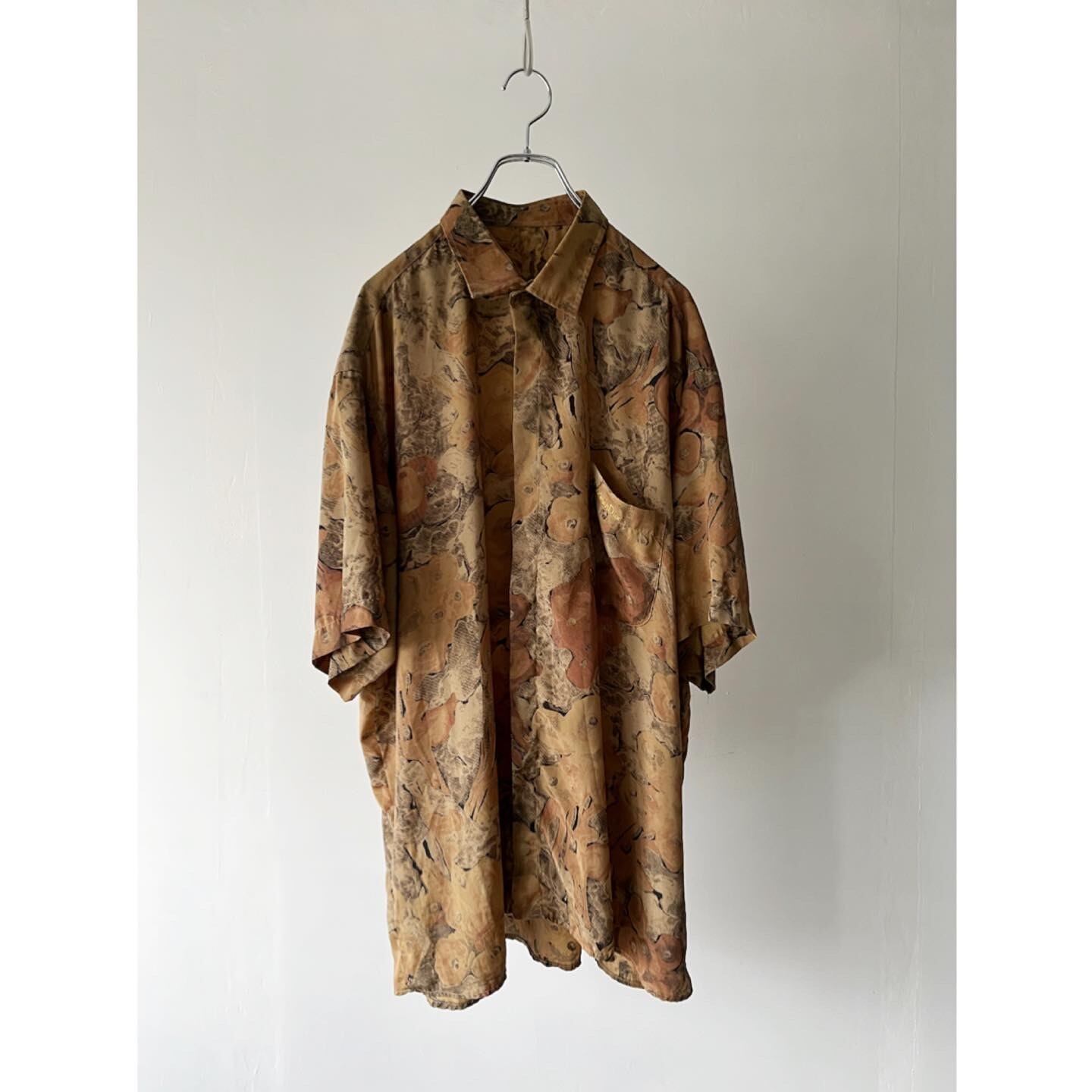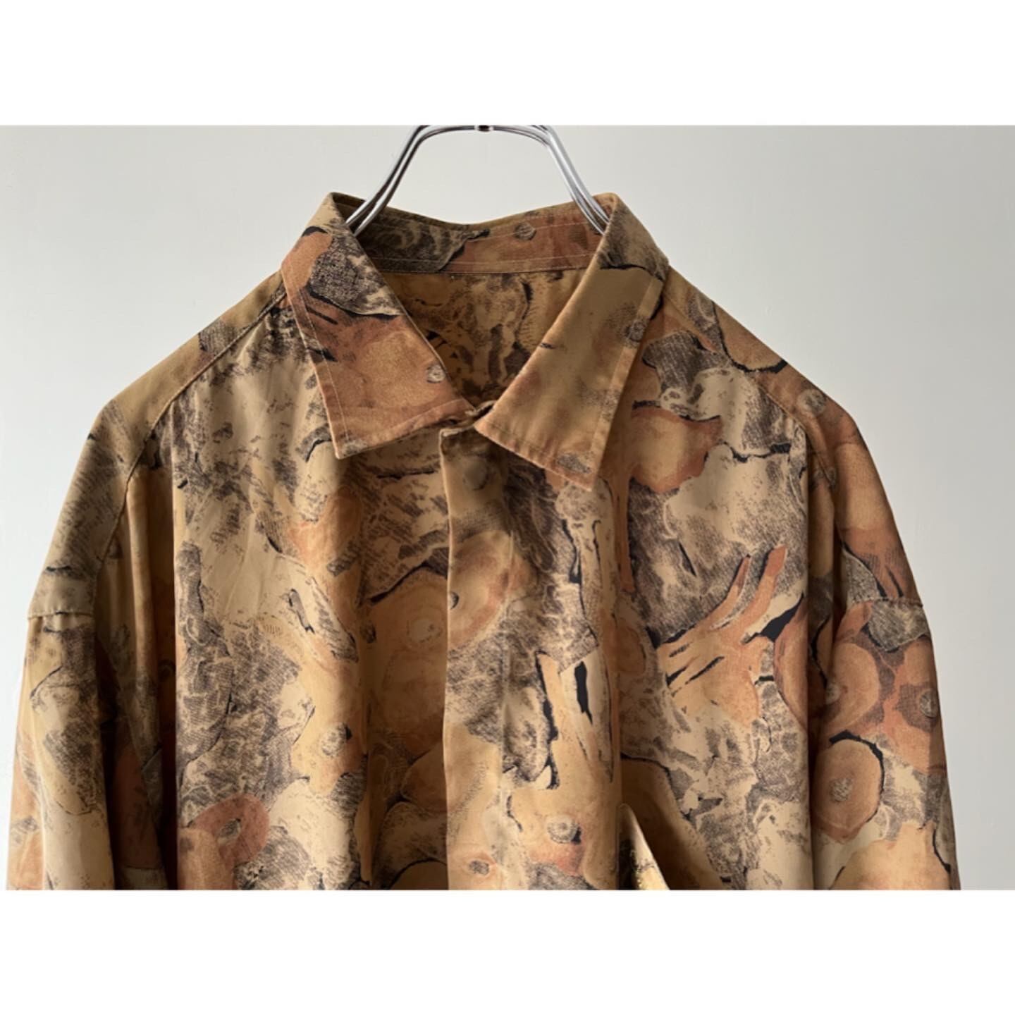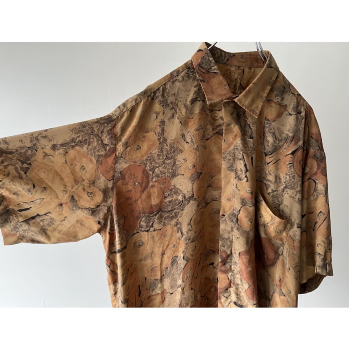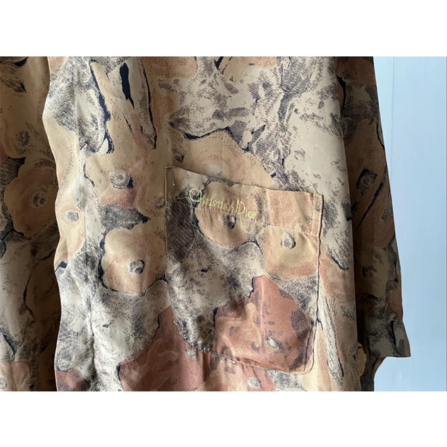 胸元にブランドのロゴ刺繍が入るレアな柄シャツ
