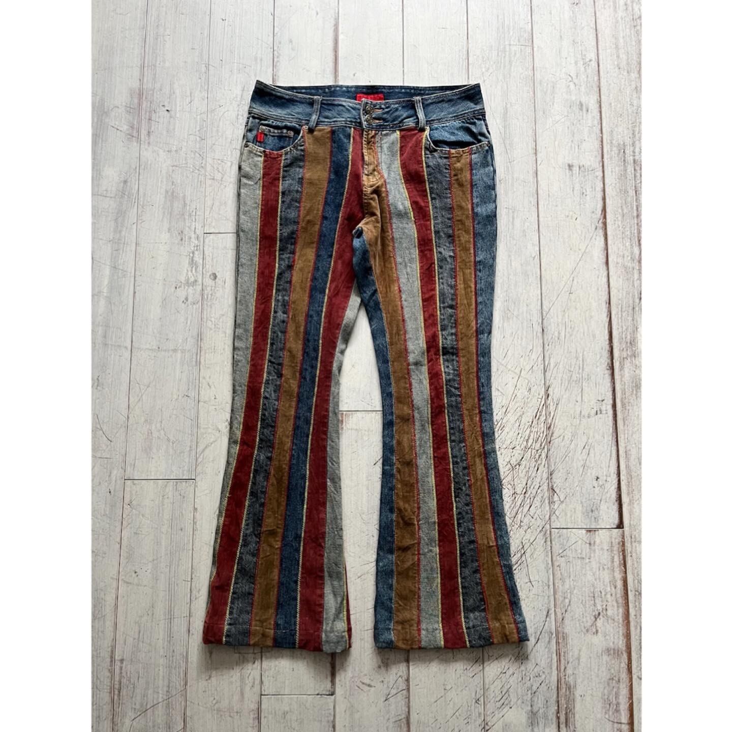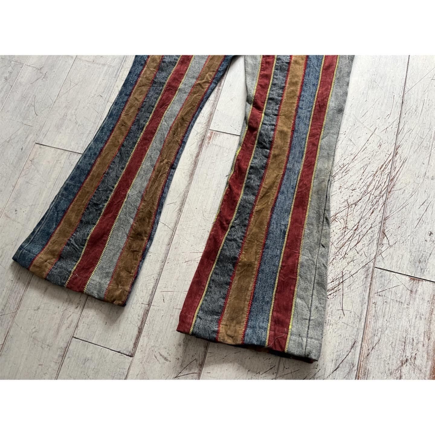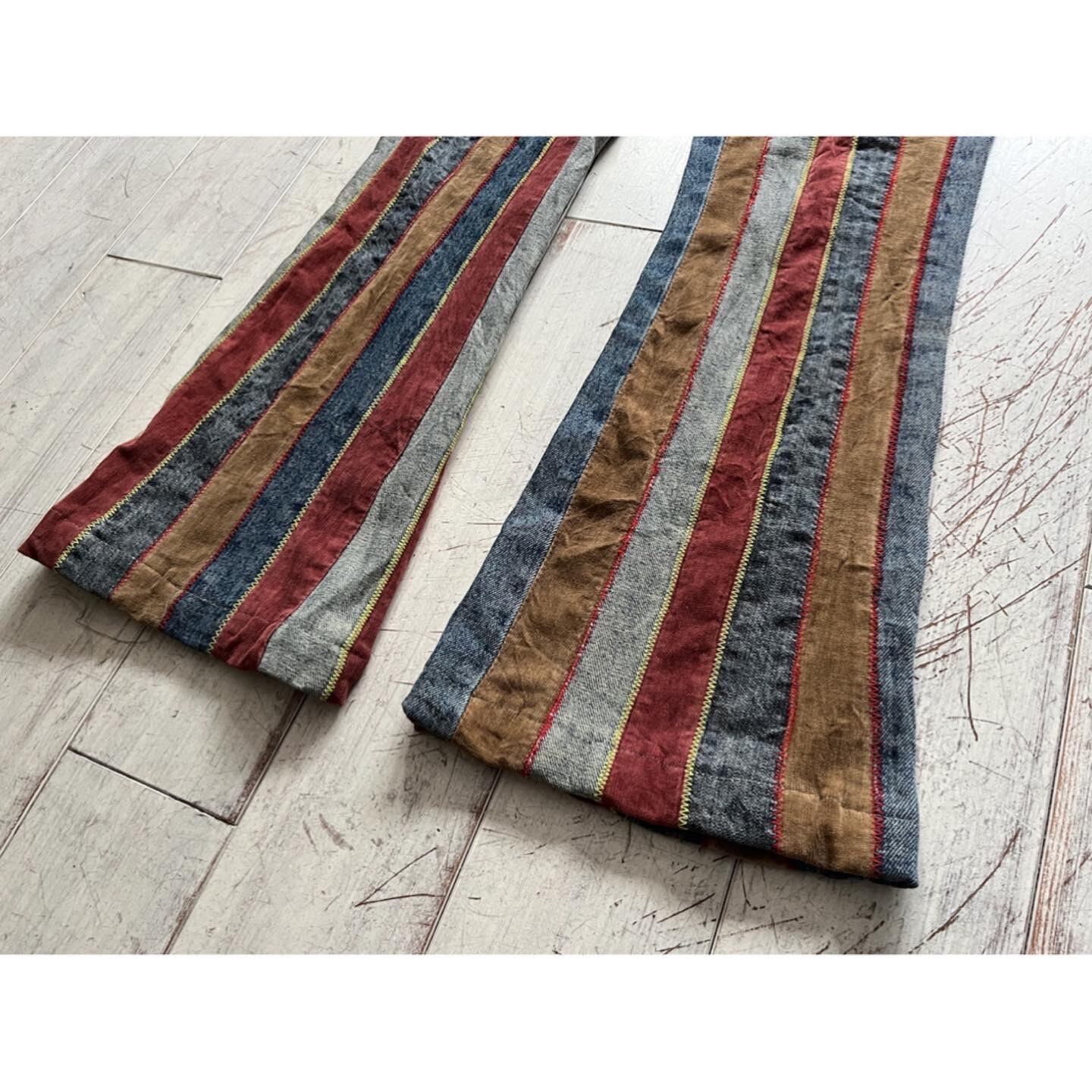 カラフルなストライプフレアパンツ