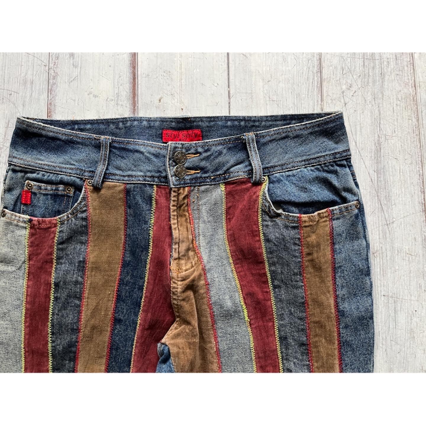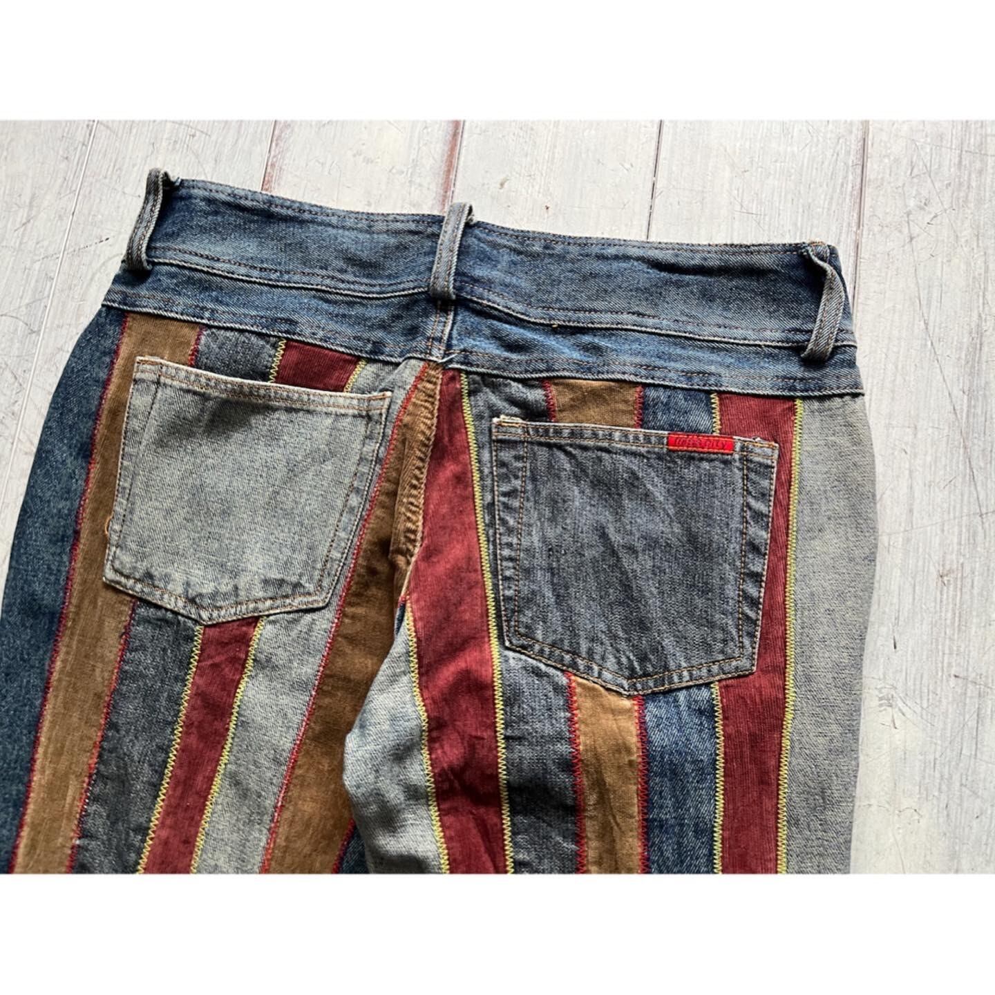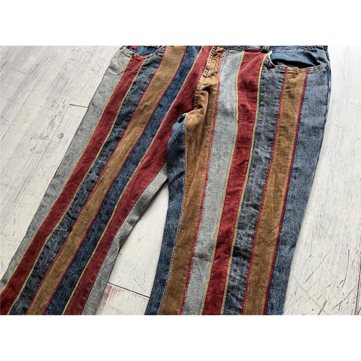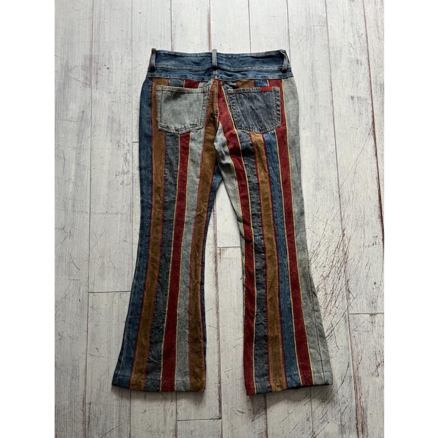 カラフルなストライプフレアパンツ