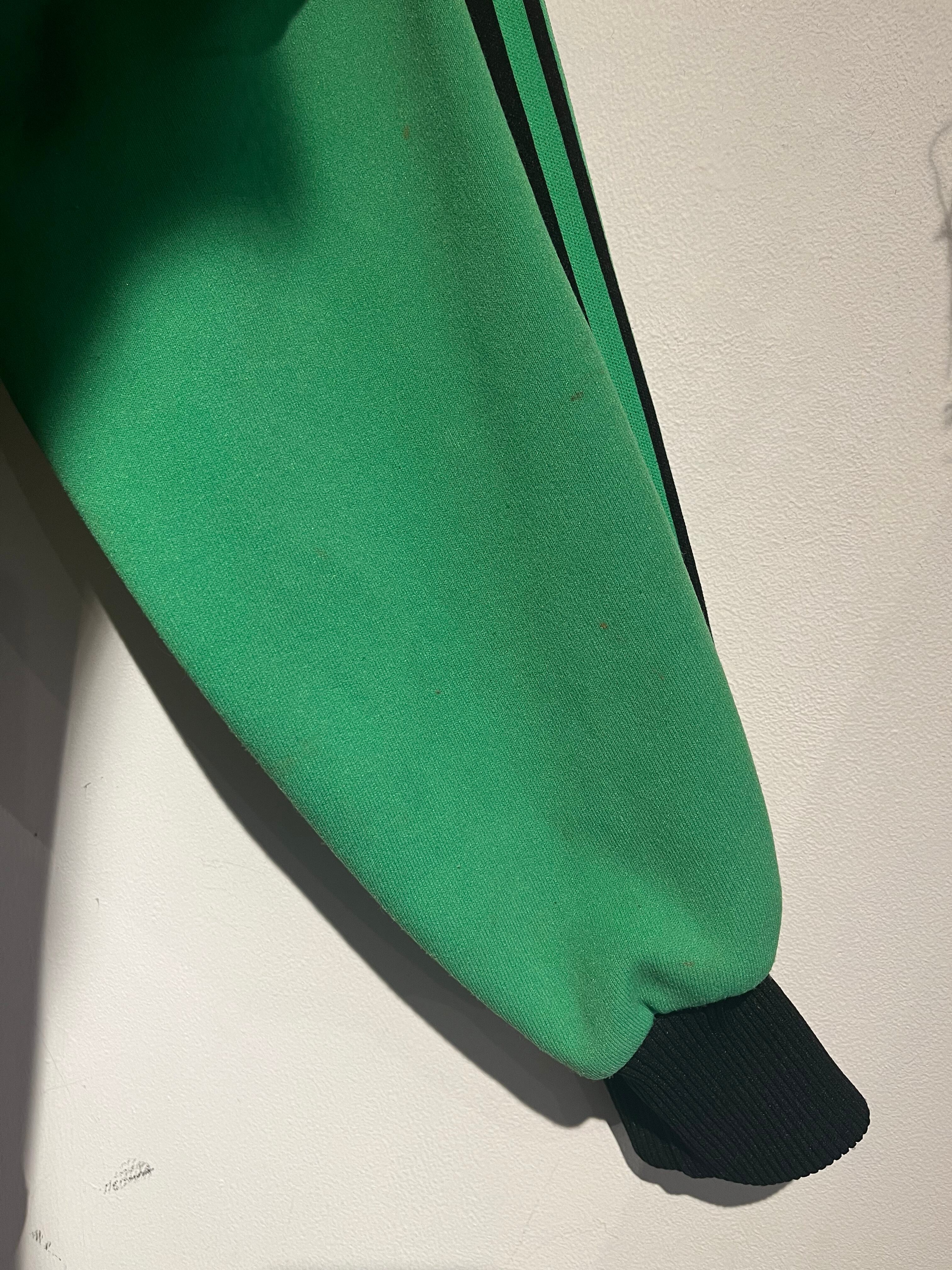 ビビッドなライトグリーンのトラックジャージ