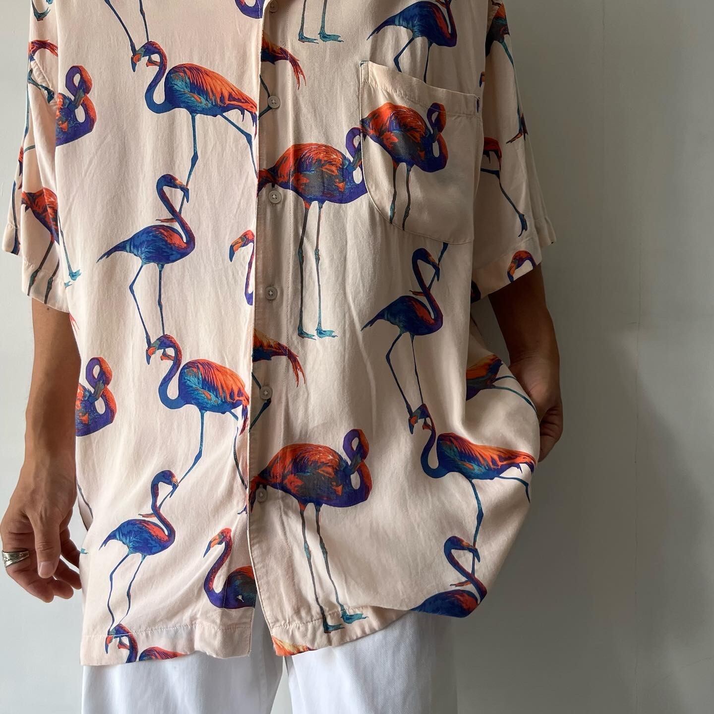 珍しいグラデーションの綺麗なフラミンゴの総柄シャツ