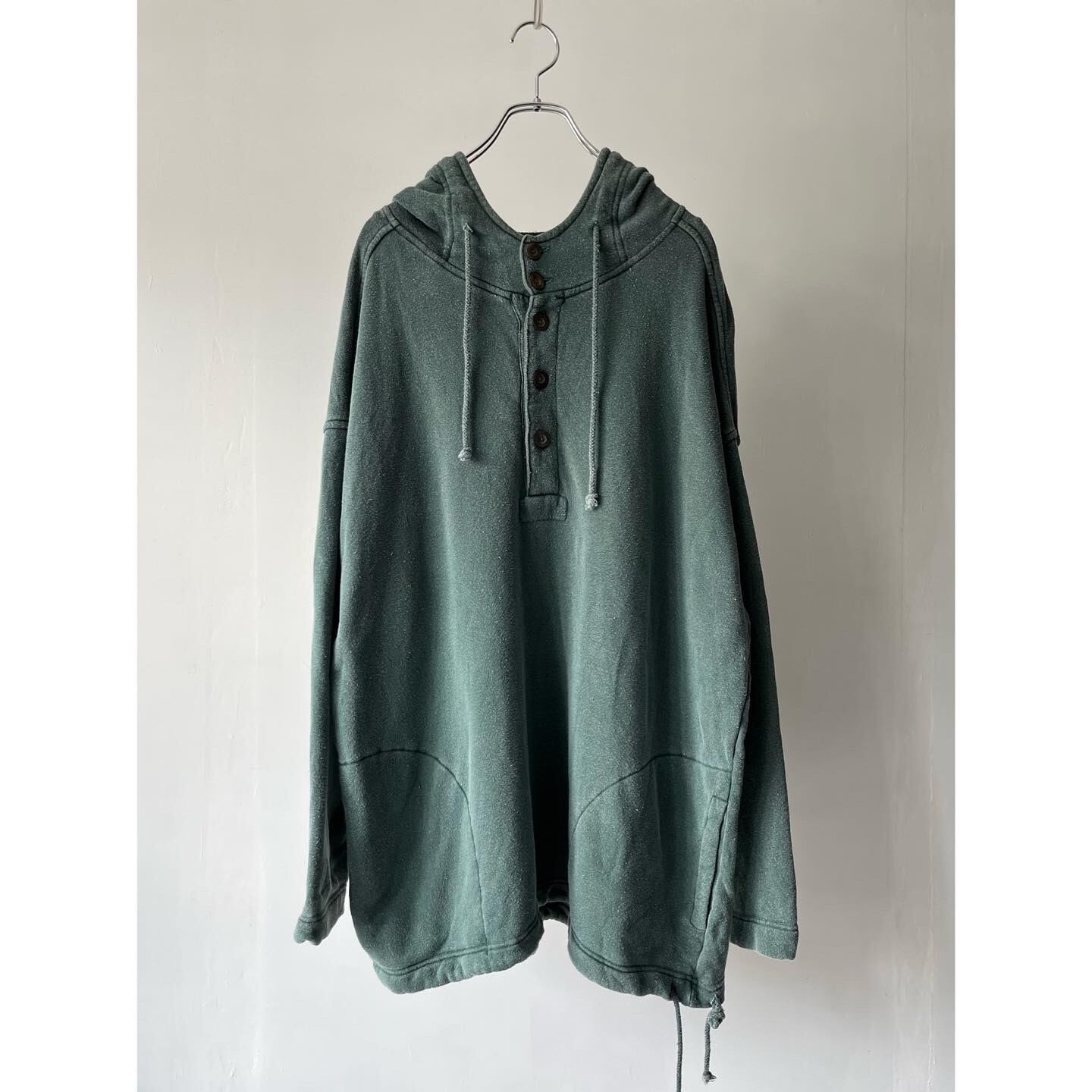 抜け感のあるモスグリーンのヘンリーネックパーカー