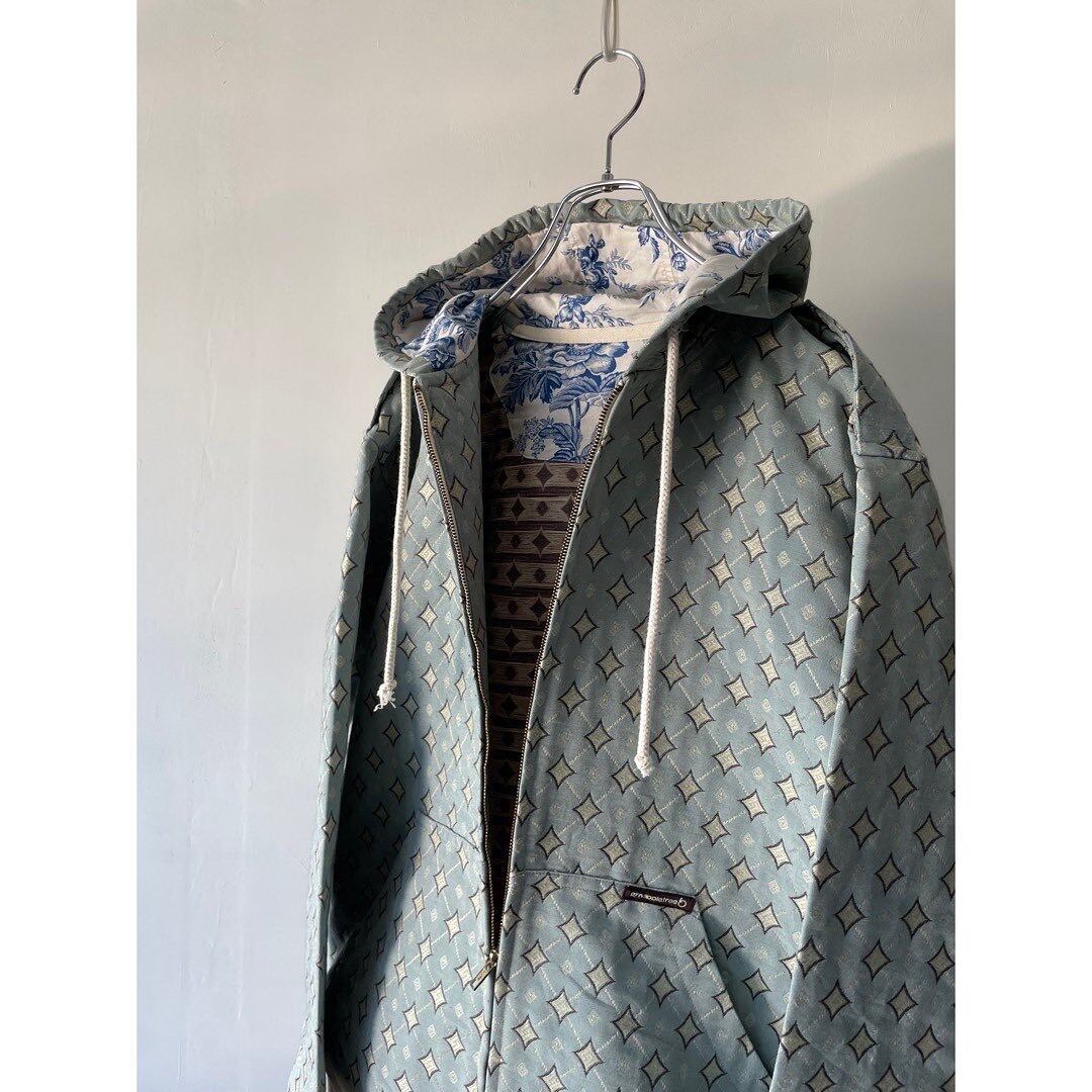 アーガイル風な柄のジップアップパーカー