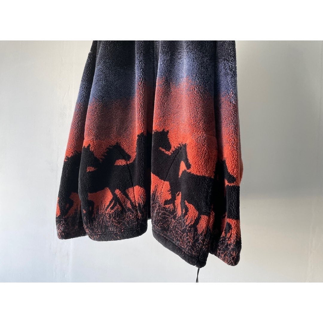 馬の群れが夕焼けの草原を走っているデザイン