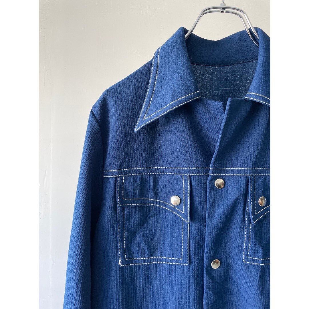 ネイビーカラーのボディにホワイトのステッチワークが映えるシャツジャケット