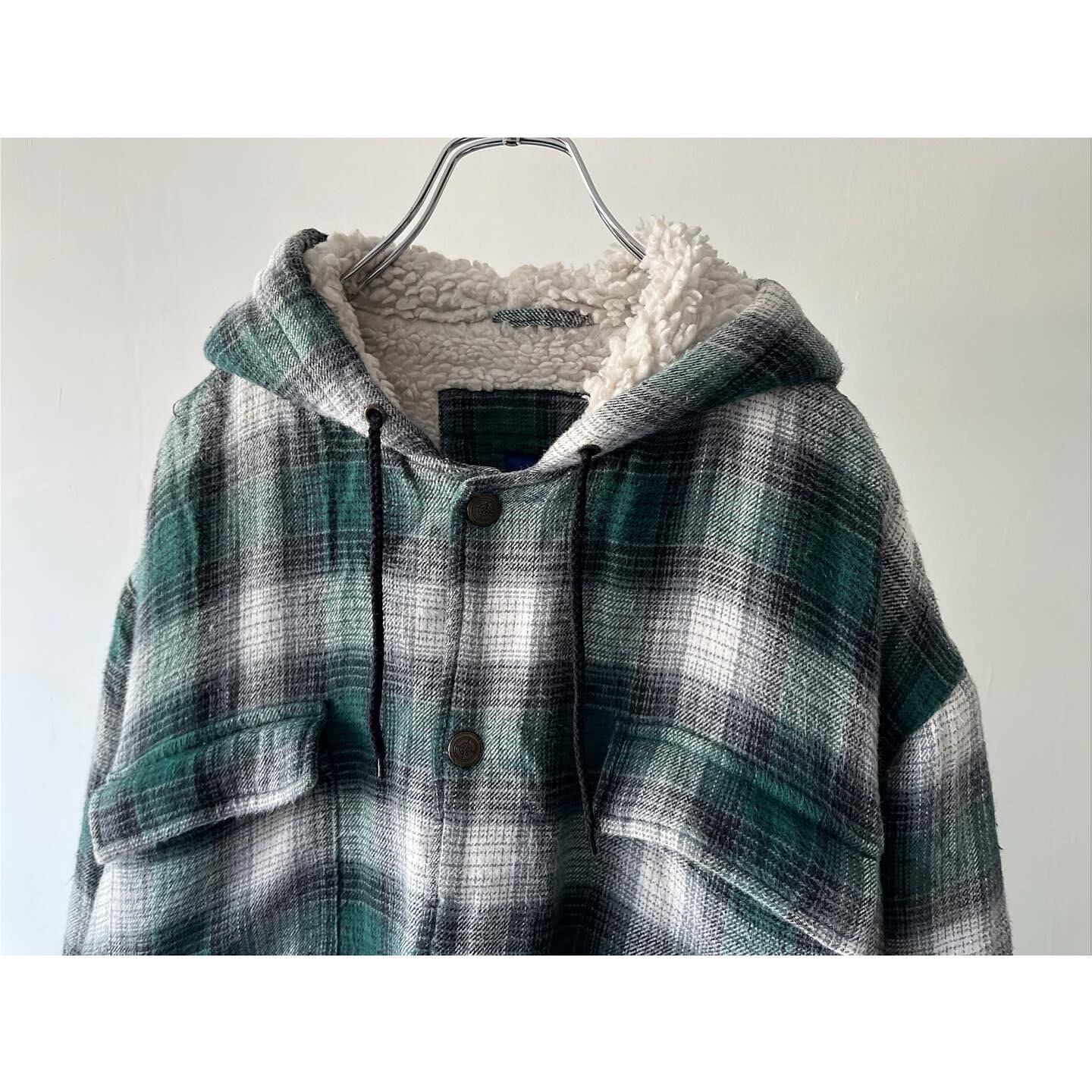 球数の少ない裏地ボアのチェックシャツパーカー
