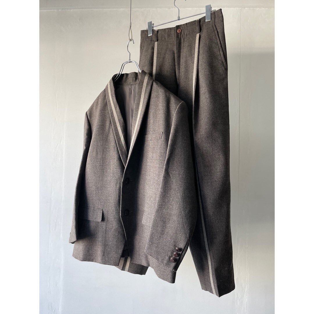 カッチリとしたシングル2ボタンのジャケットに緩いシルエットのスラックスがアイコニックで素敵