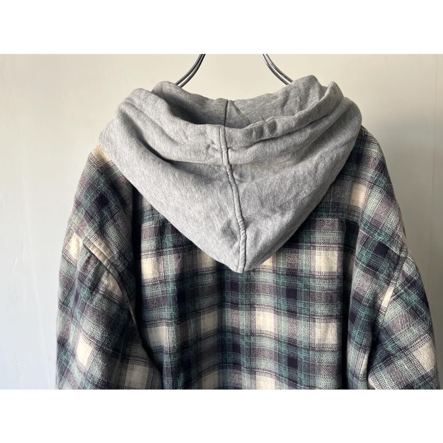 フード付きのいなたいシャドーチェックシャツ