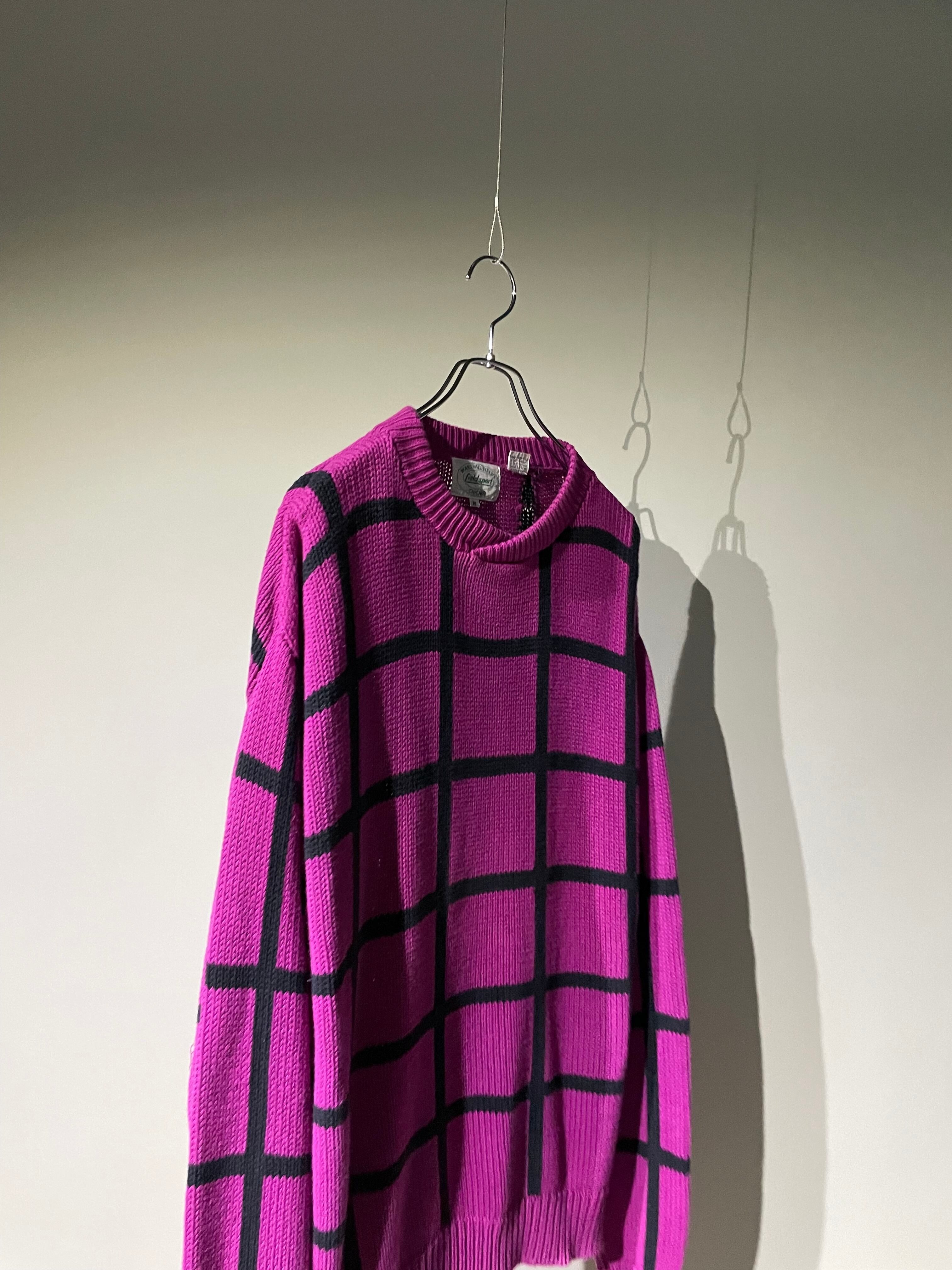 エッジの効いた柄や配色のパンクな雰囲気とオーバーサイズかつローゲージの素朴な雰囲気が融合した唯一無二な印象のプルオーバーニット