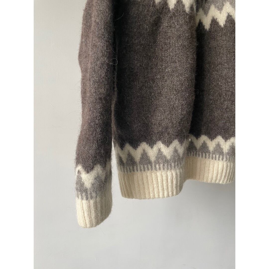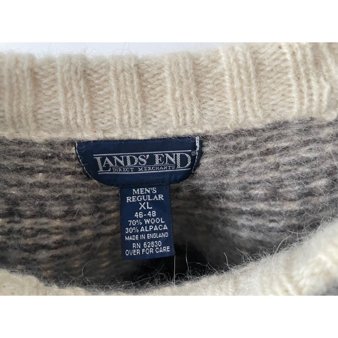 ランズエンドの定番ニットの中でも一際目を惹くブラウンカラーのノルディック柄