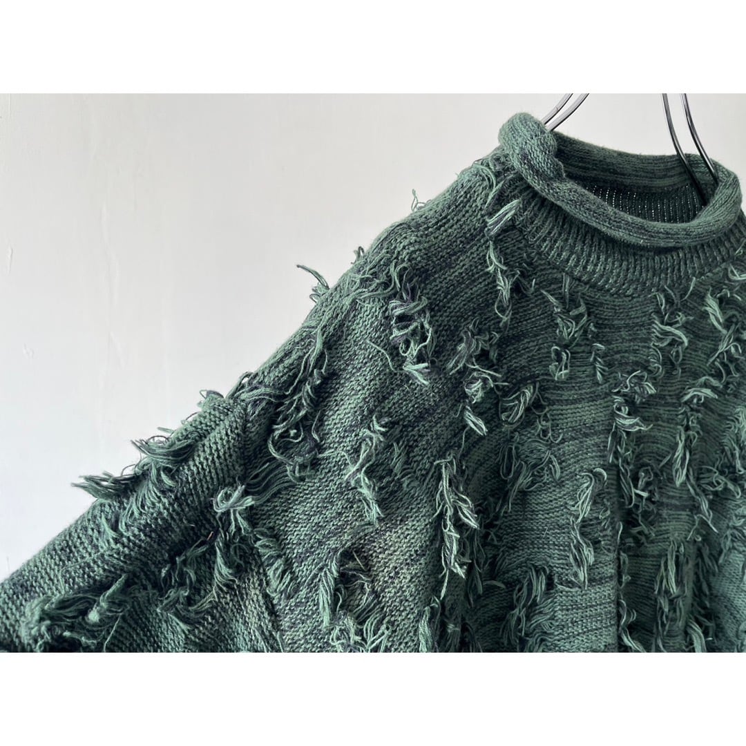 フリンジのようなデザインが全面あるとてもユニークなニット