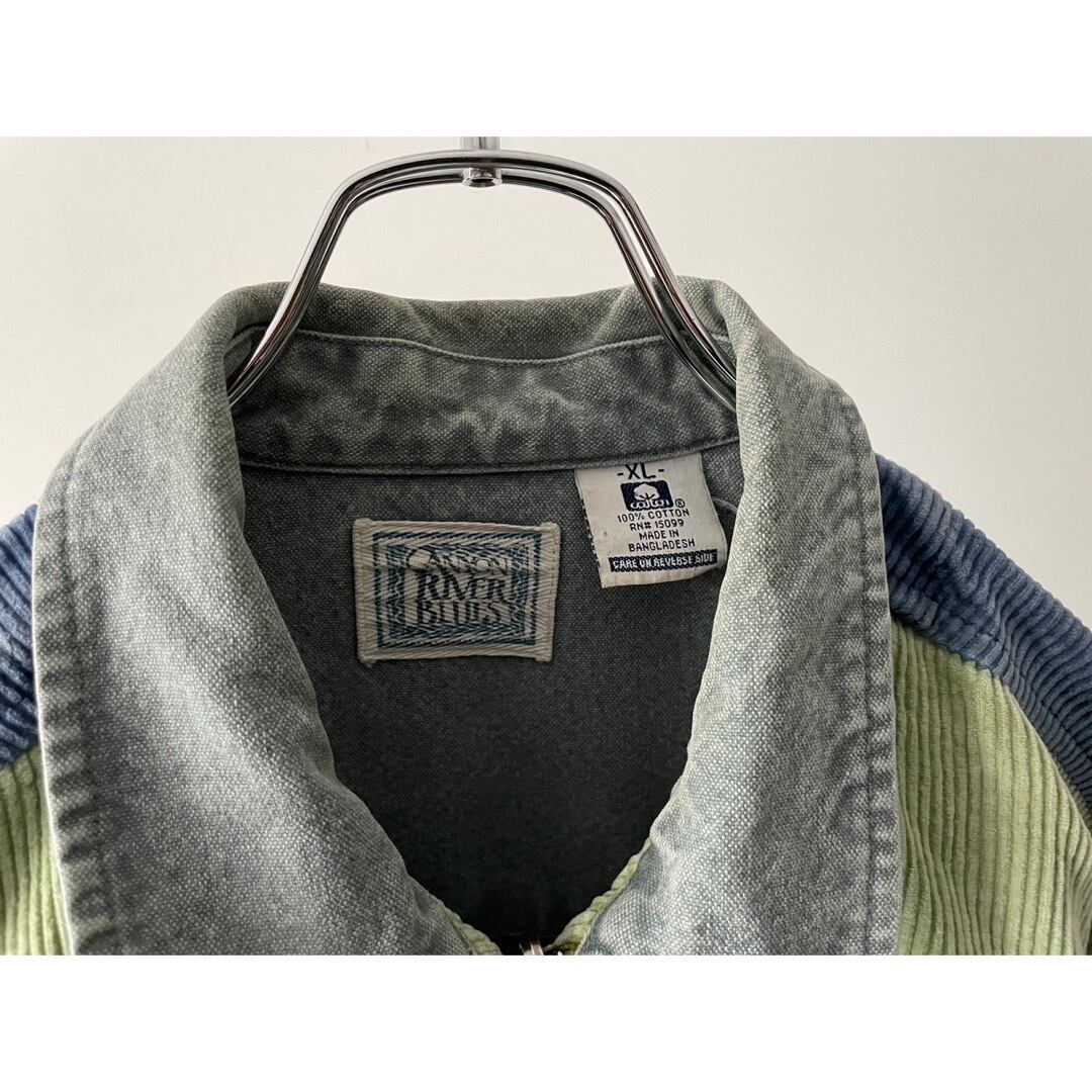 程よく厚手な太畝コーデュロイとグレーのデニムとの切り替えデザイン
