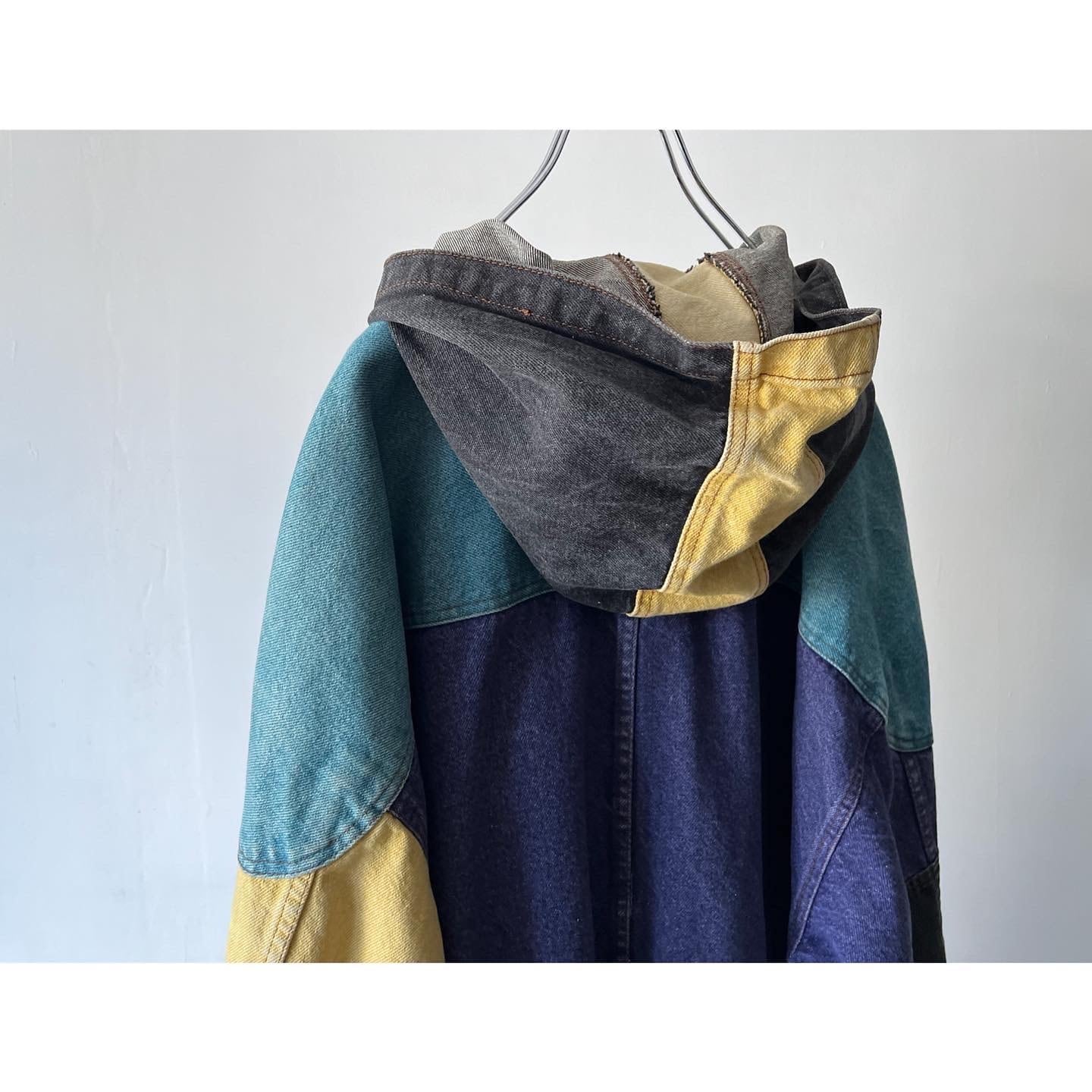 4色のデニムで構成されたユニークな切り替えのアイテム
