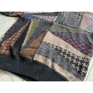 様々な柄や生地で構成されたインパクト大なデザインニット