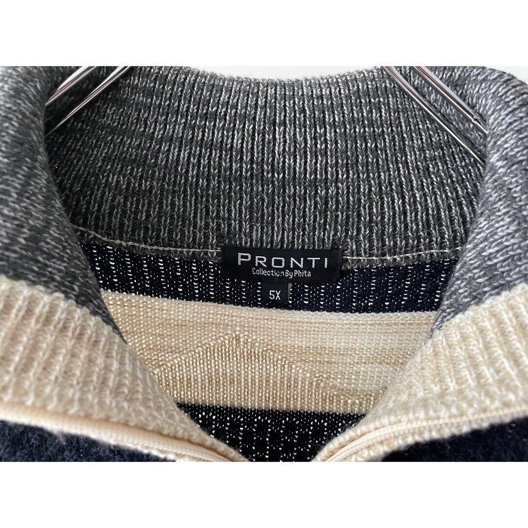 太ボーダーのハーフジップニット