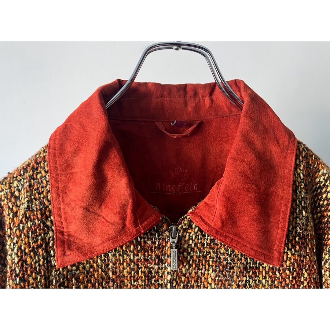 フェイクスエードと民族調な荒めの生地の2トーンジャケット