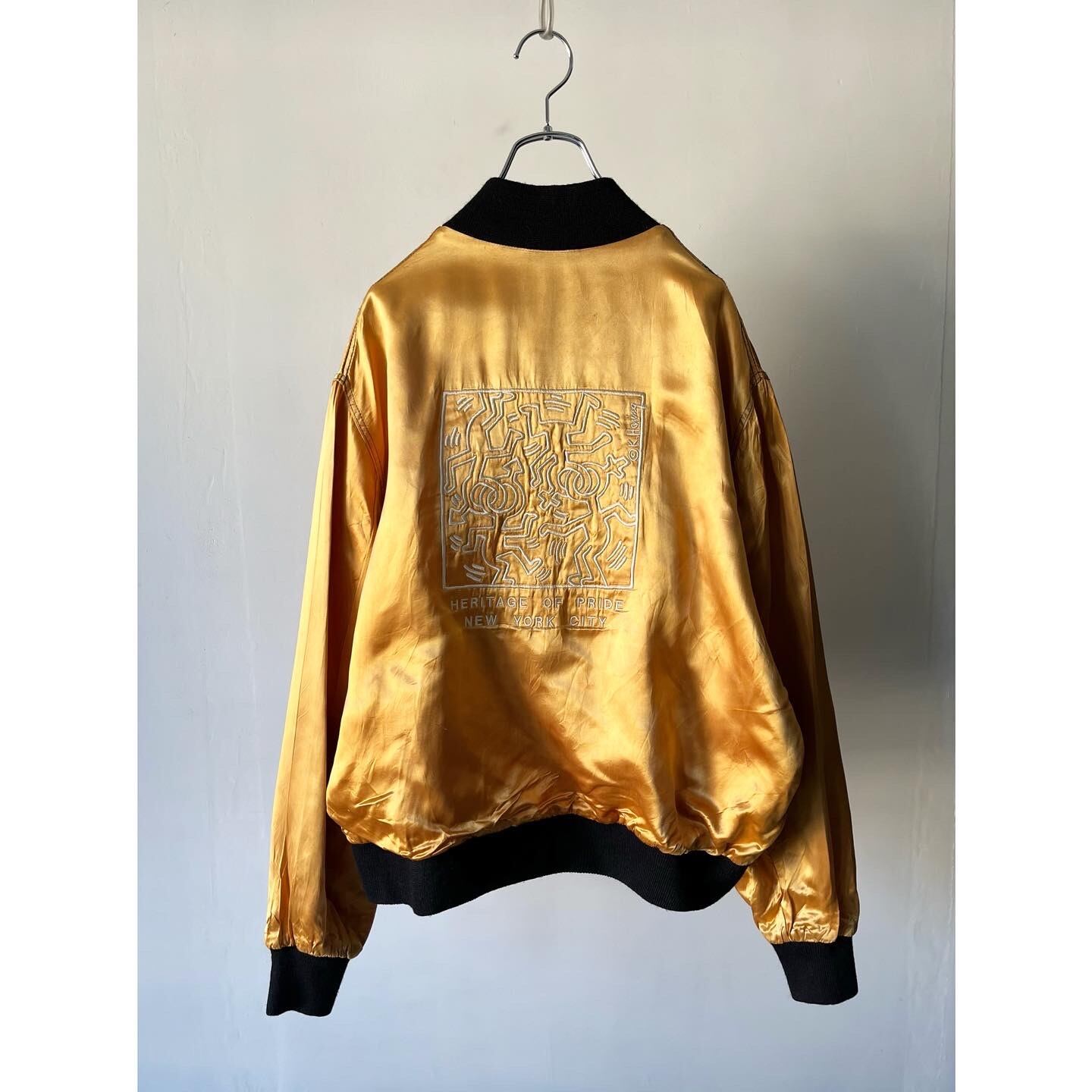 バックにはアメリカの代表的な画家であるキースヘリングの刺繍デザイン