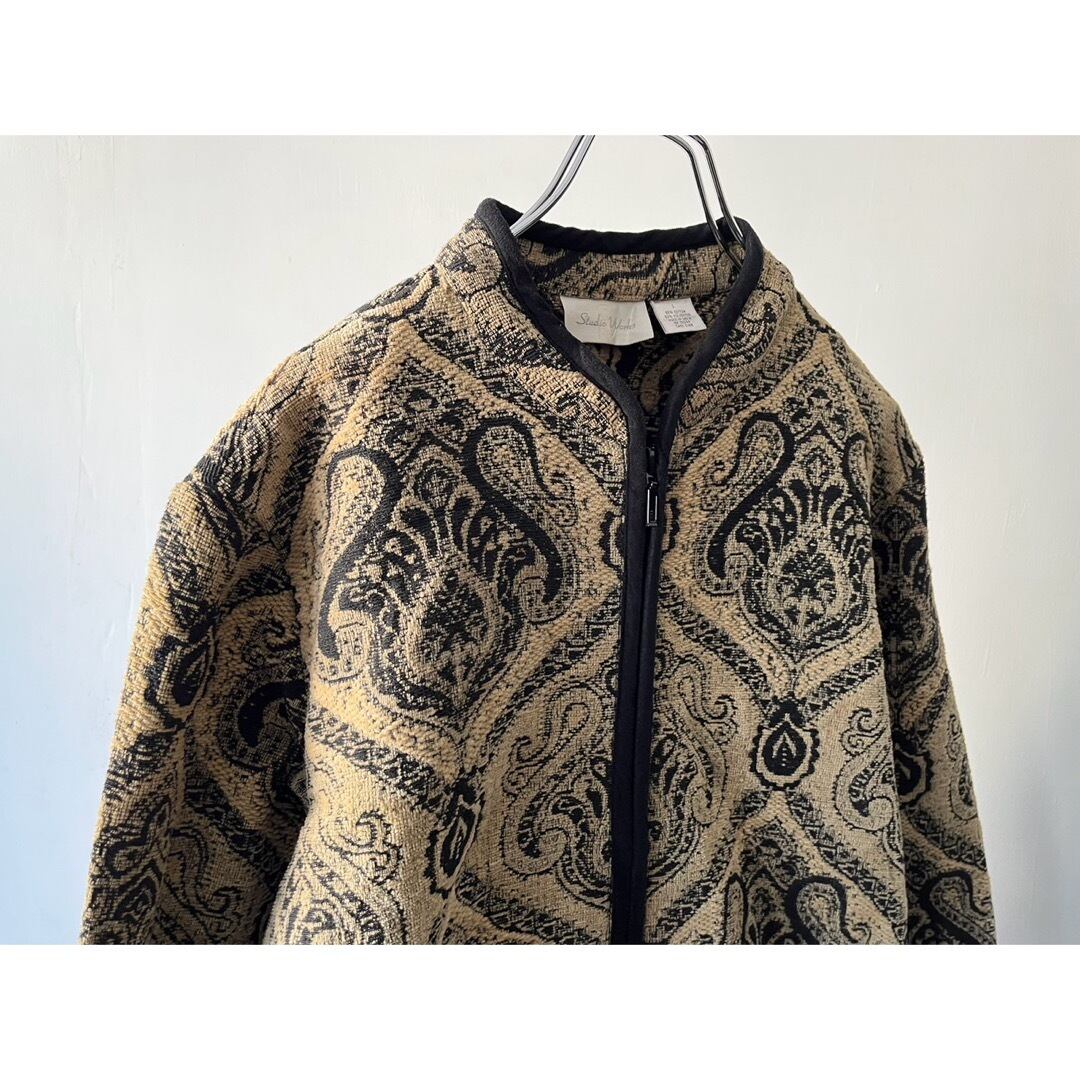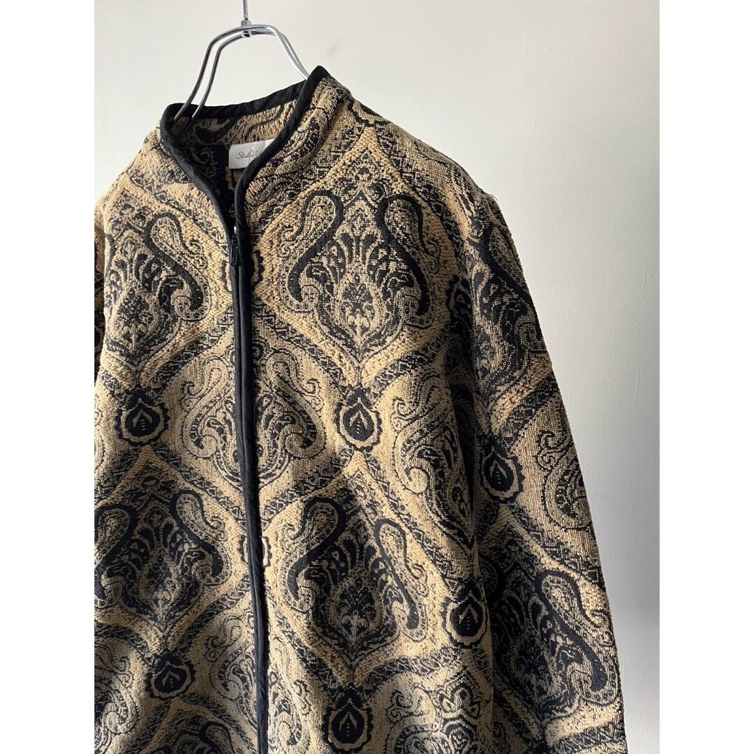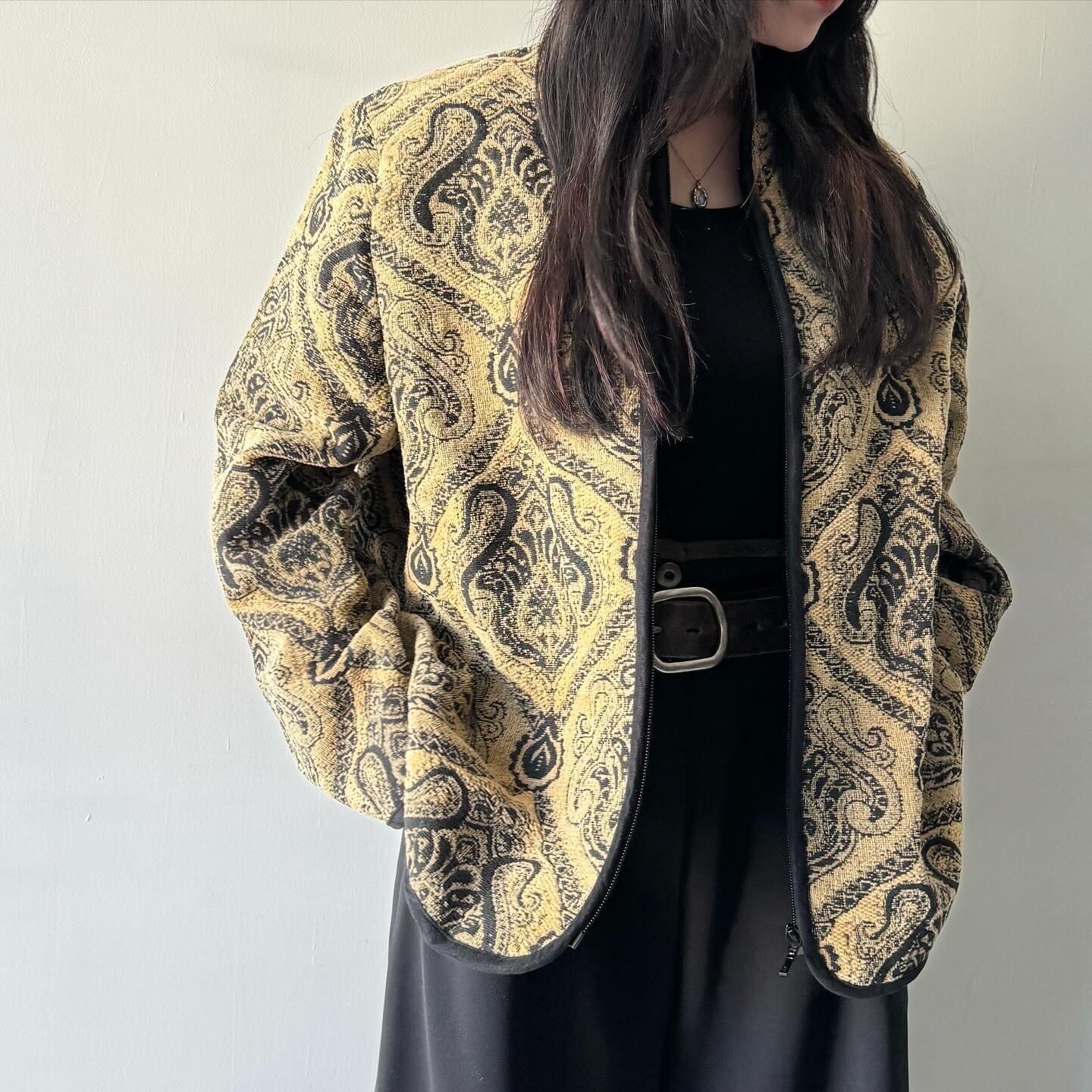 シルエットのいいカラーレスタイプのゴブランジャケット