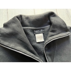 フレンチ・カジュアルを代表するパリのブランドagnes b. 人気の高いフランス製のハイネックジップスウェット 定番のアイコンとなっているレザールがプリントされた珍しいスペシャルな1着 薄手のタイトなサイズ感でインナー使いにもお勧めです 退色感、ヨレあります ・ 着丈62 肩幅53 身幅58 袖丈70 ・ size1 ・ cotton100% ・