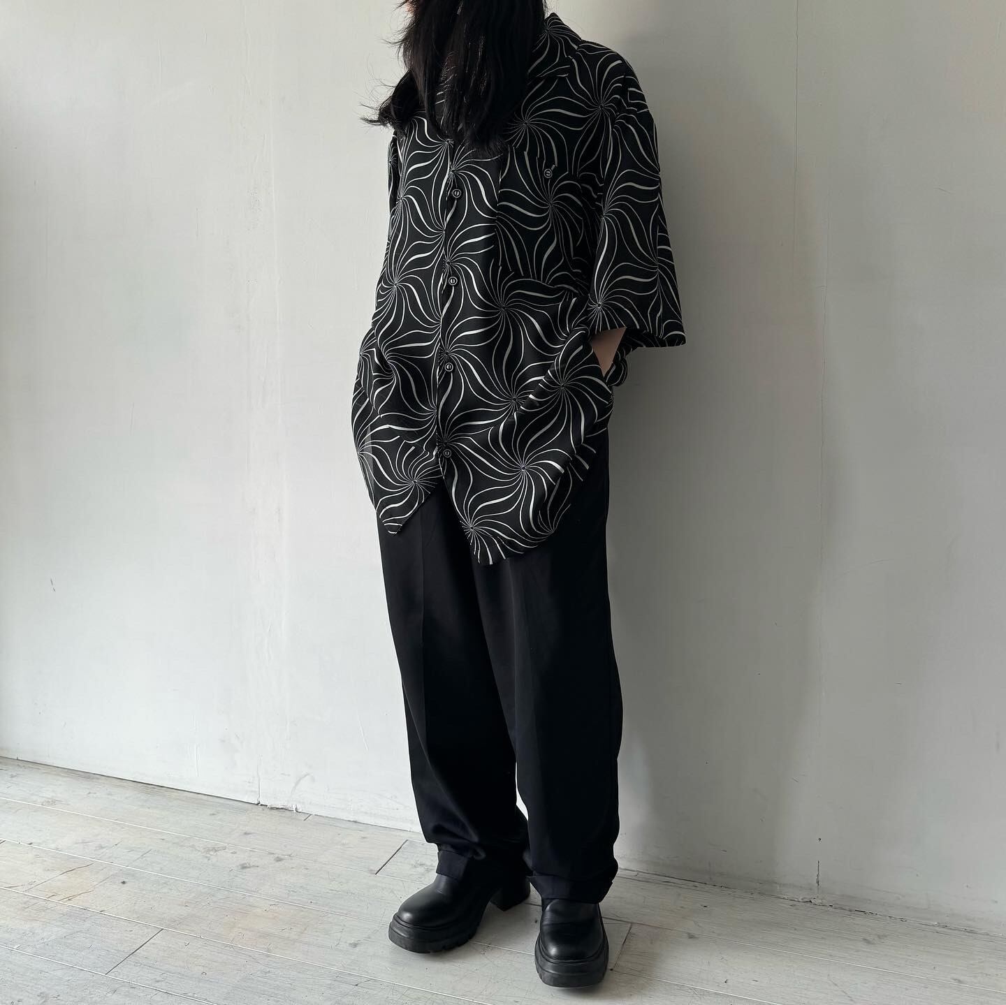 和柄調の独特な総柄デザインオープンカラーシャツ