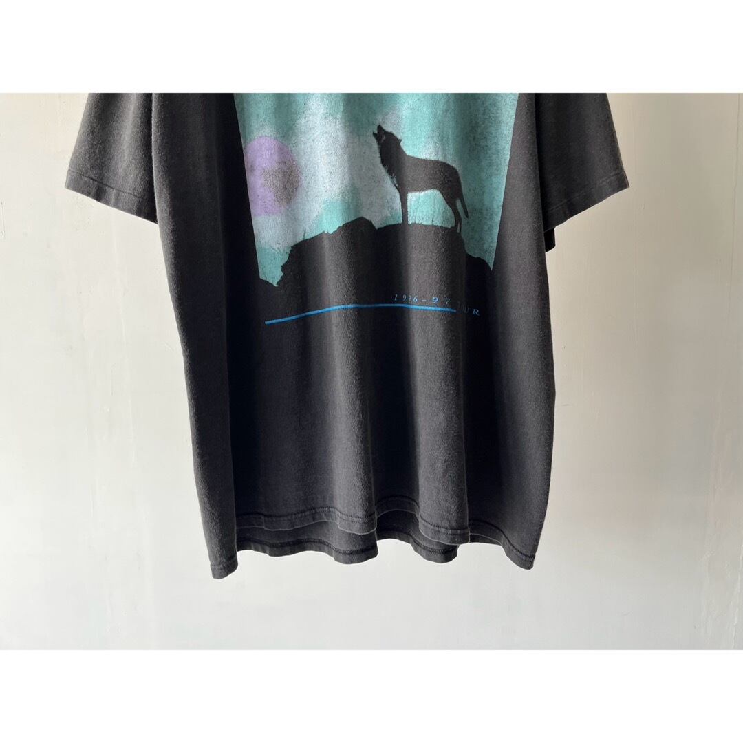 フロントには満月に遠吠えするオオカミを、背面にはツアーで回った地名を載せているプリント