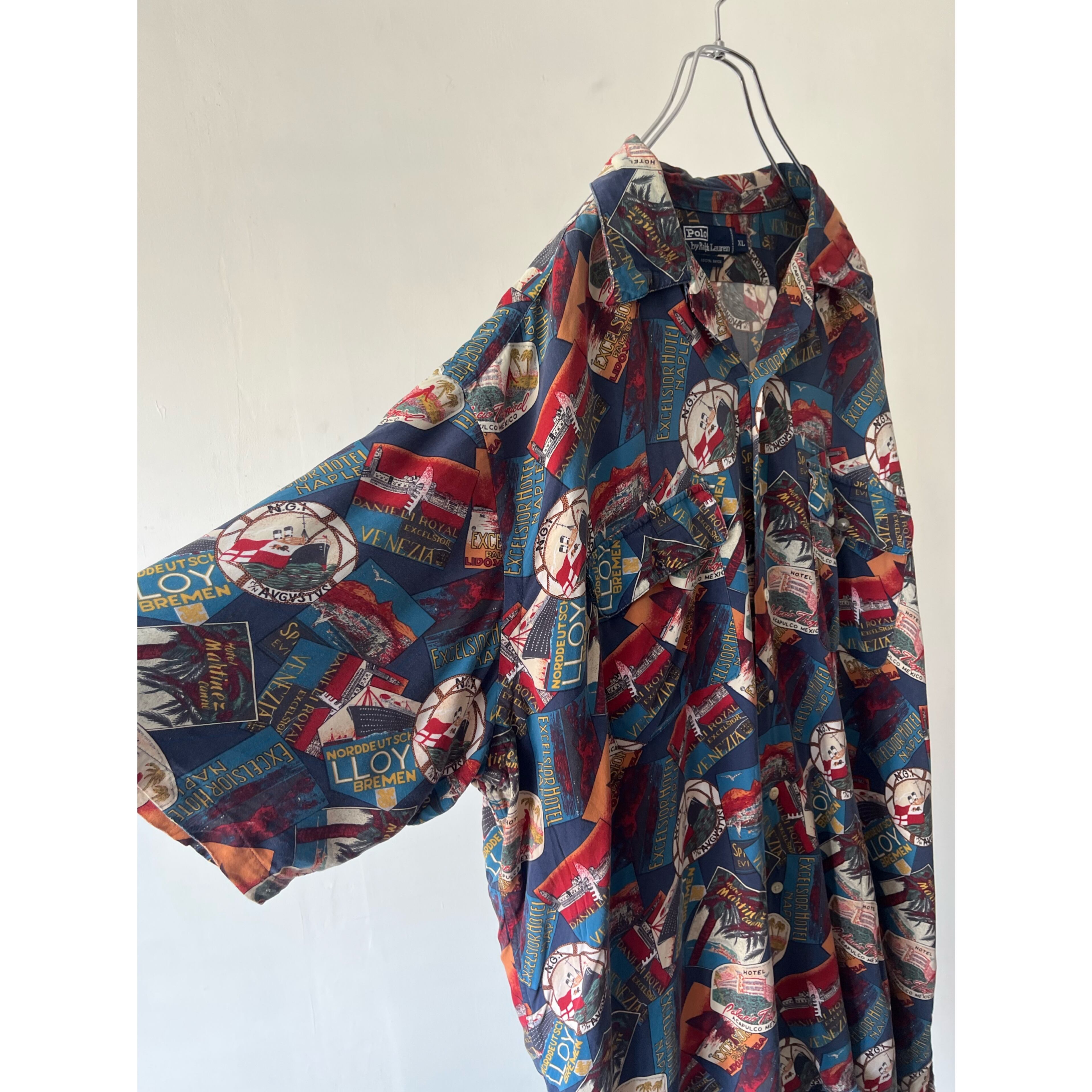 絵葉書が散りばめられた様なお洒落な総柄デザイン