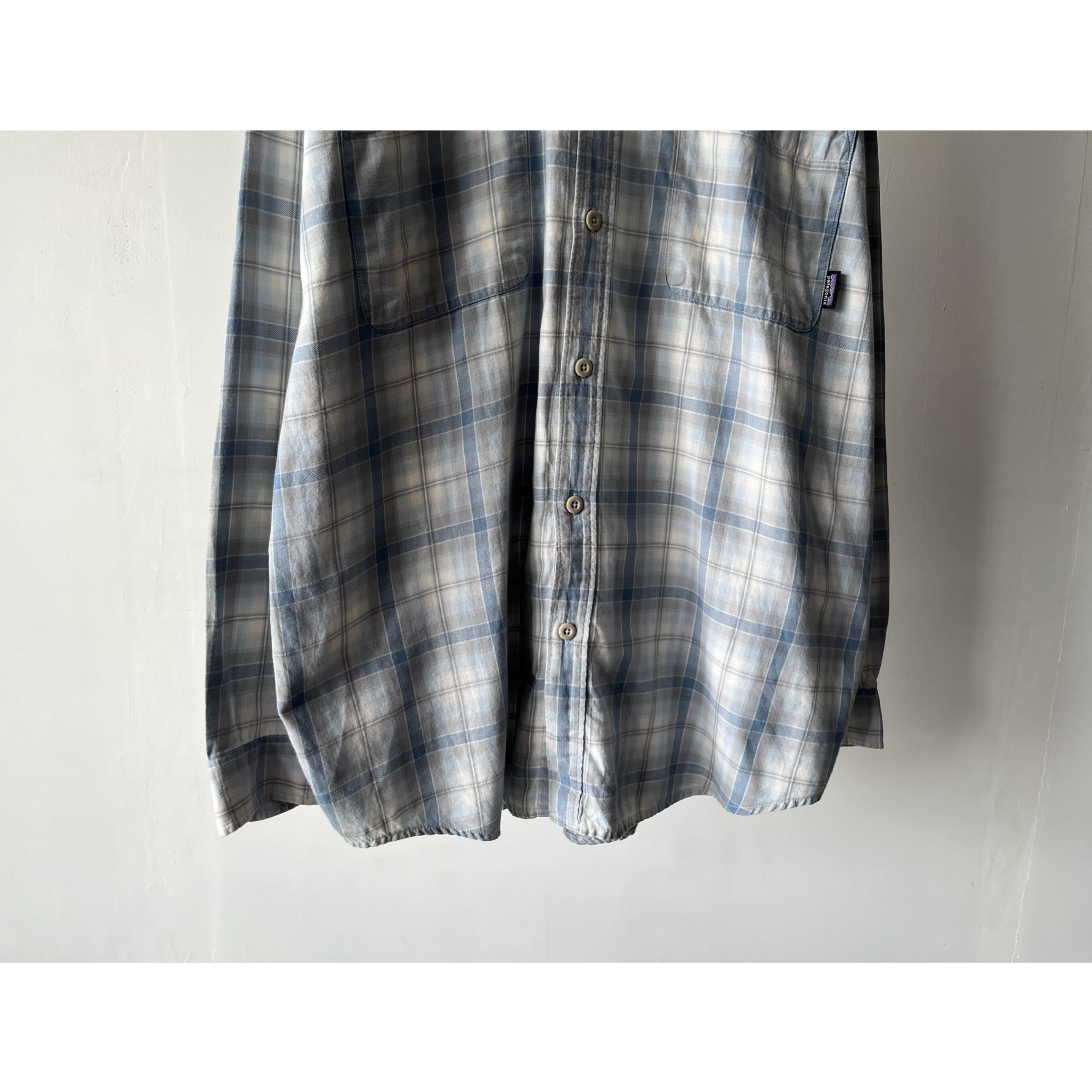 ブルー×ベージュの爽やかなl/sチェックシャツ