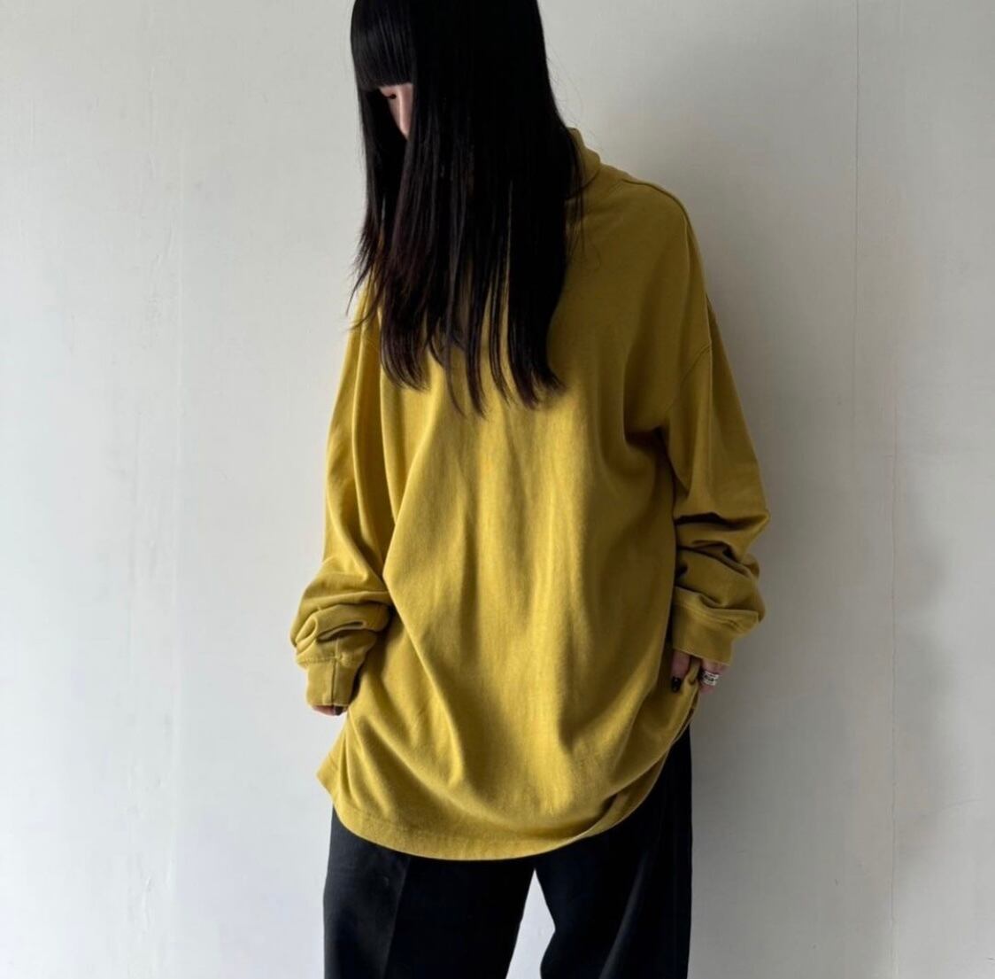 マスタードイエローカラーの無地ロンT